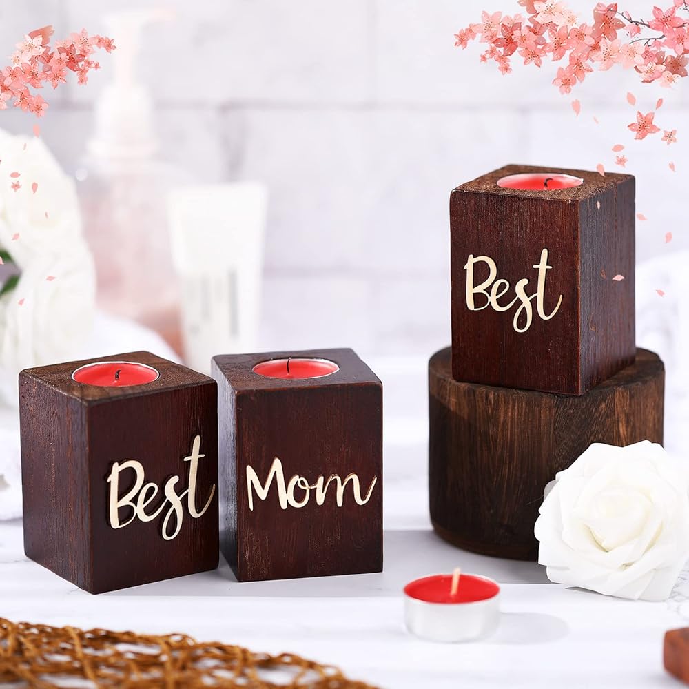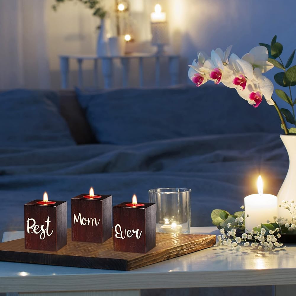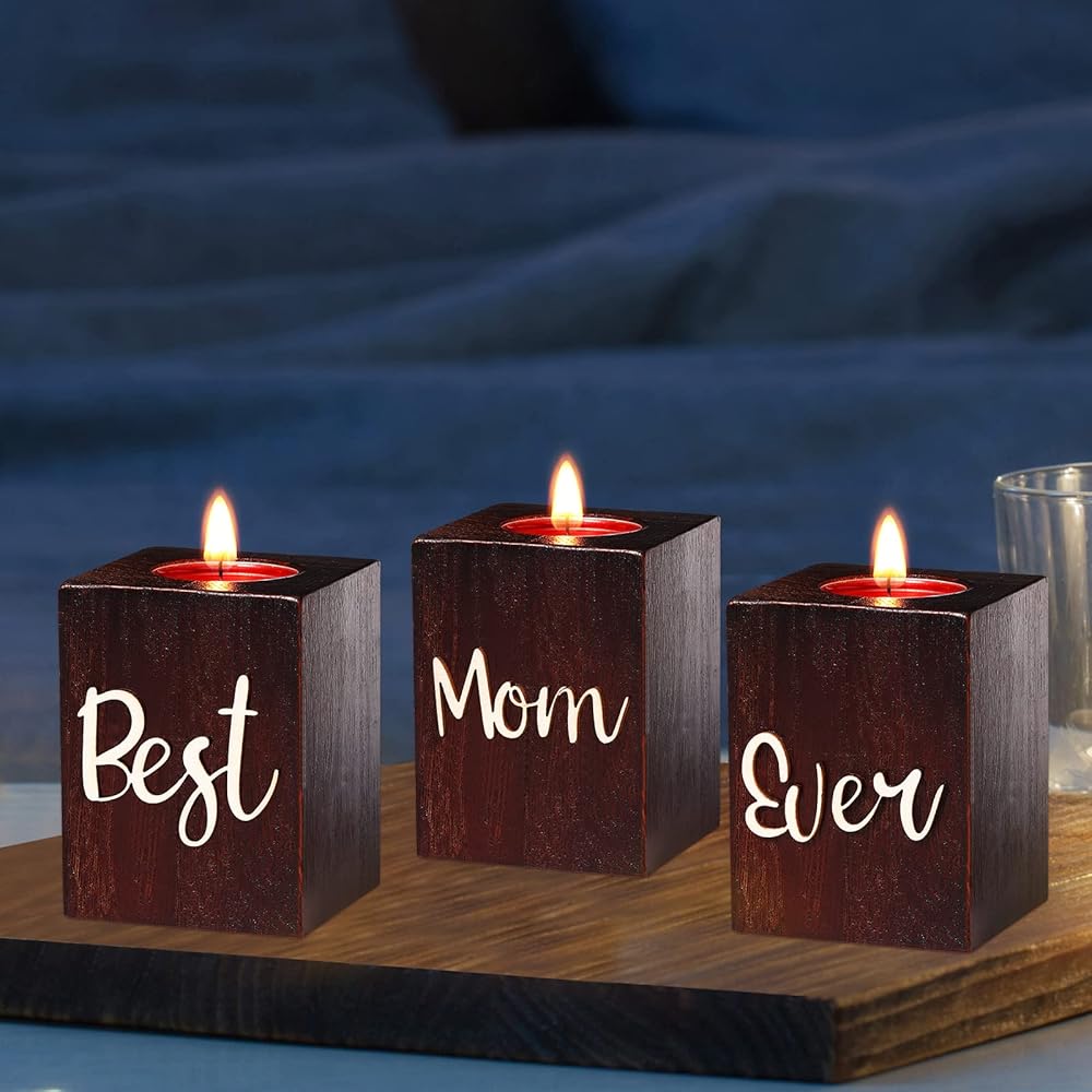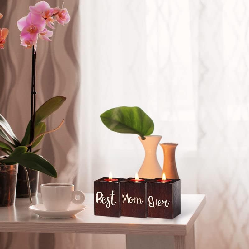 The candle holders are made of quality wood, sturdy and stable, each measure approx 3.15 x 2.36 x 2.36 inches/ 8 x 6 x 6 cm, and each candle holder is separately printed with wood letter [Best Mom Ever], cute size to decorate on your bedside table, dining table, desk, shelf, fireplace and other places.