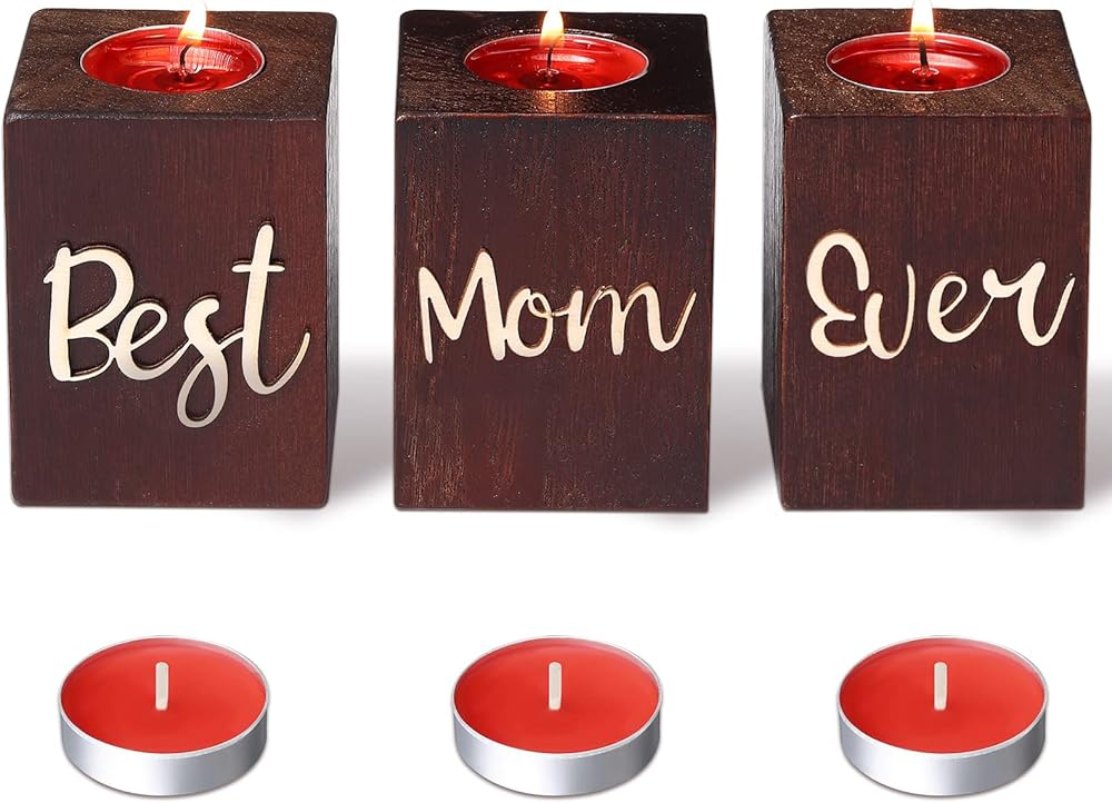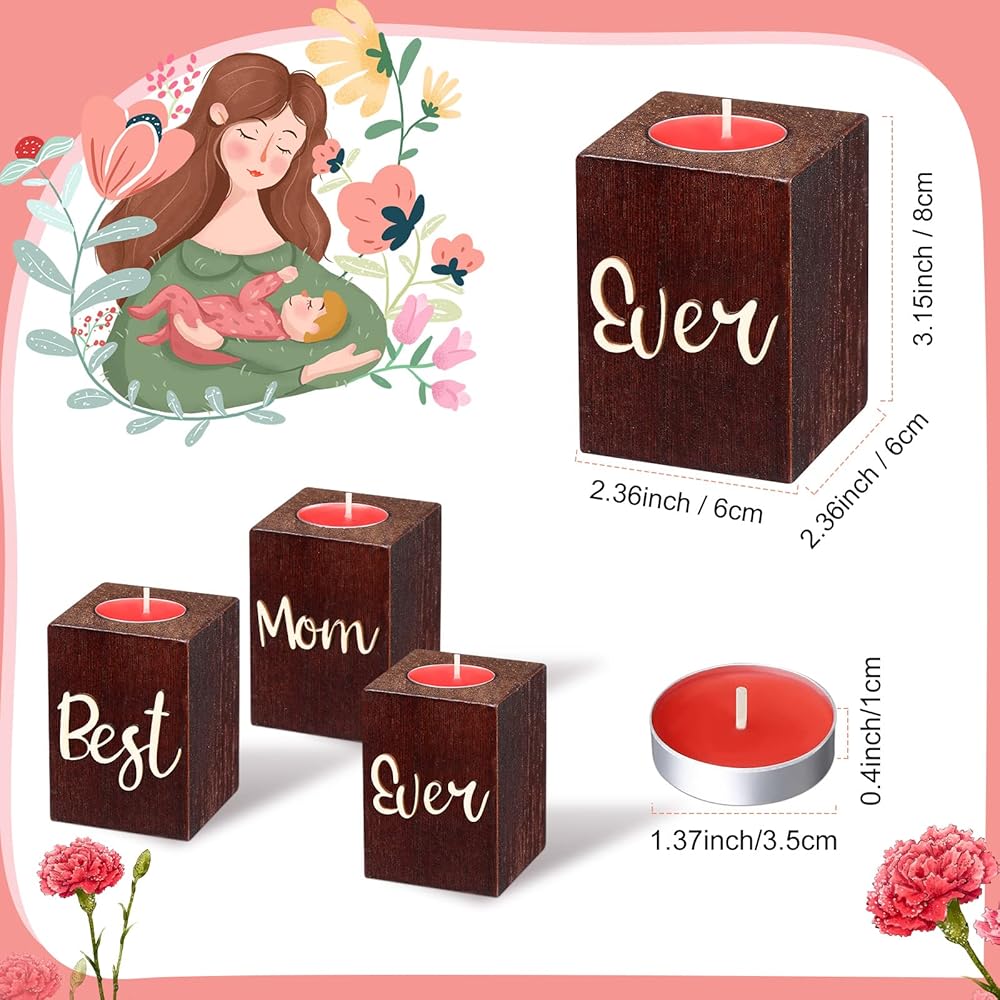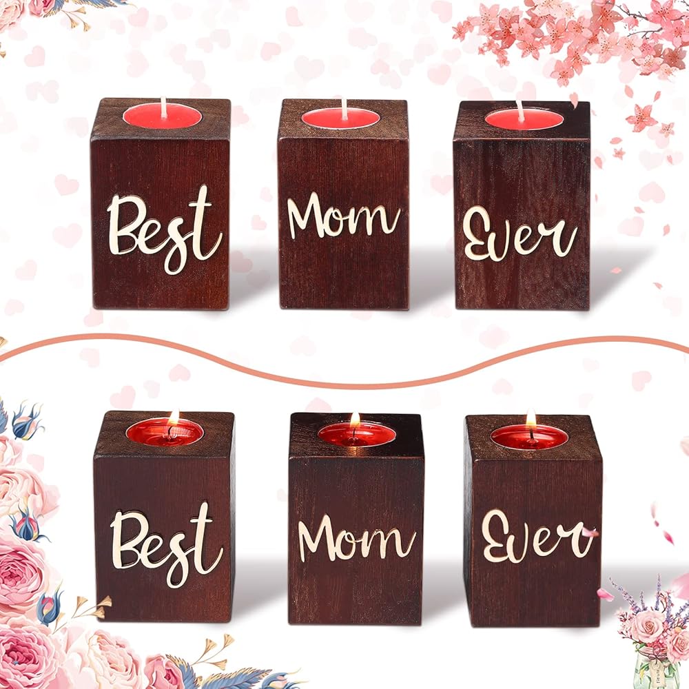 The candle holders are made of quality wood, sturdy and stable, each measure approx 3.15 x 2.36 x 2.36 inches/ 8 x 6 x 6 cm, and each candle holder is separately printed with wood letter [Best Mom Ever], cute size to decorate on your bedside table, dining table, desk, shelf, fireplace and other places.