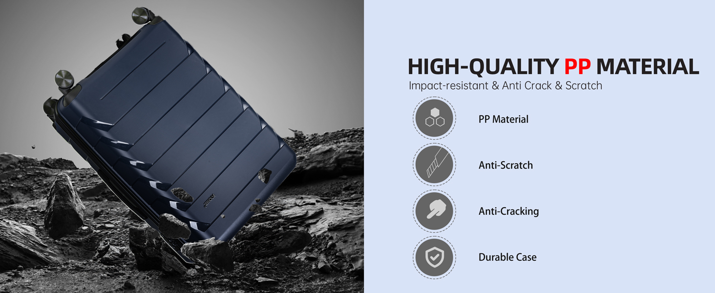 • ✈️【𝗔𝗻𝘁𝗶 𝗖𝗿𝗮𝗰𝗸 & 𝗦𝗰𝗿𝗮𝘁𝗰𝗵 & 𝟭𝟬𝟬% 𝗣𝗣 𝗠𝗮𝘁𝗲𝗿𝗶 𝗮𝗹】مجموعات الأمتعة ذات الغلاف الصلب ذات العجلات الدوارة مصنوعة من مادة البولي بروبيلين الصديقة للبيئة بنسبة 100%، وهي أكثر متانة وأخف وزنًا ومقاومة للصدمات من مادة أكريلونتريل بوتادين ستايرين والكمبيوتر الشخصي. هي مادة مبتكرة في صناعة الأمتعة الصلبة. تتميز بلمسة نهائية مزخرفة لمنع التشقق والخدوش، مما يحافظ على جمال الحقائب بعد الرحلة.