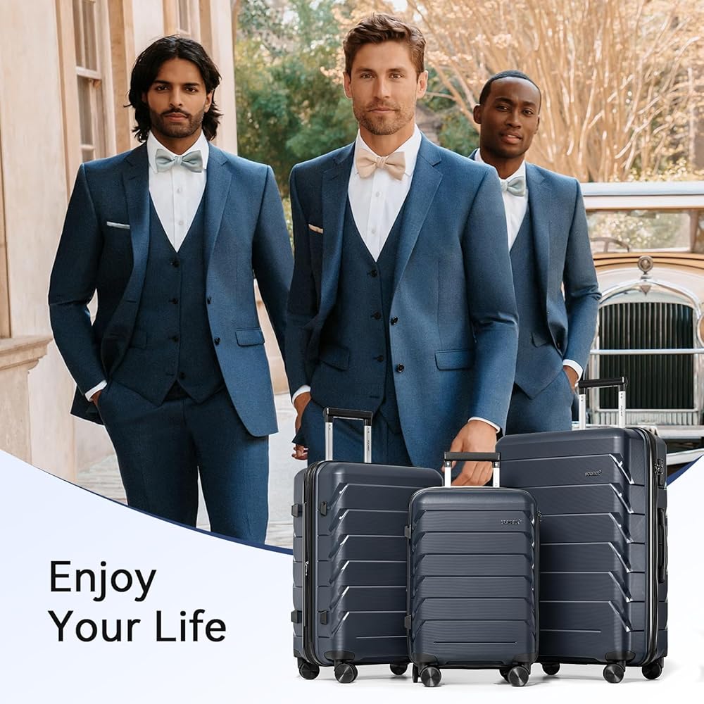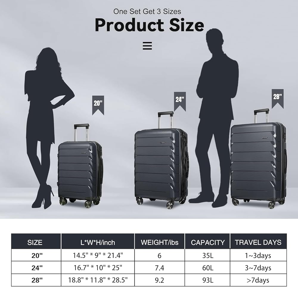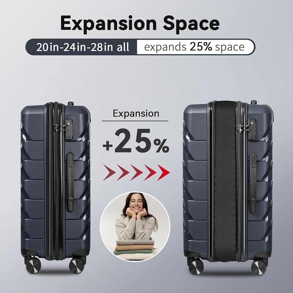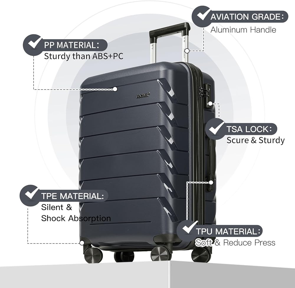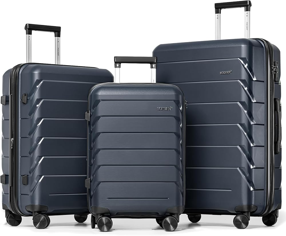 FOCHIER F مجموعات الأمتعة القابلة للتوسيع 3 قطع مع قفل TSA، مجموعة الأمتعة مجموعة حقيبة سفر من مادة PP مع عجلات دوارة للرجال والنساء، 20 بوصة/24 بوصة/28 بوصة
