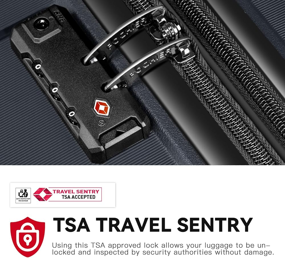 • تحتوي مجموعات الأمتعة الصلبة على قفل TSA مثبت على الجانب والذي يسمح فقط لعملاء TSA بفحص حقائبك دون إتلاف القفل عند السفر قابلة للتوسيع، مما يضيف سعة 25% للأمتعة ذات الغلاف الصلب)