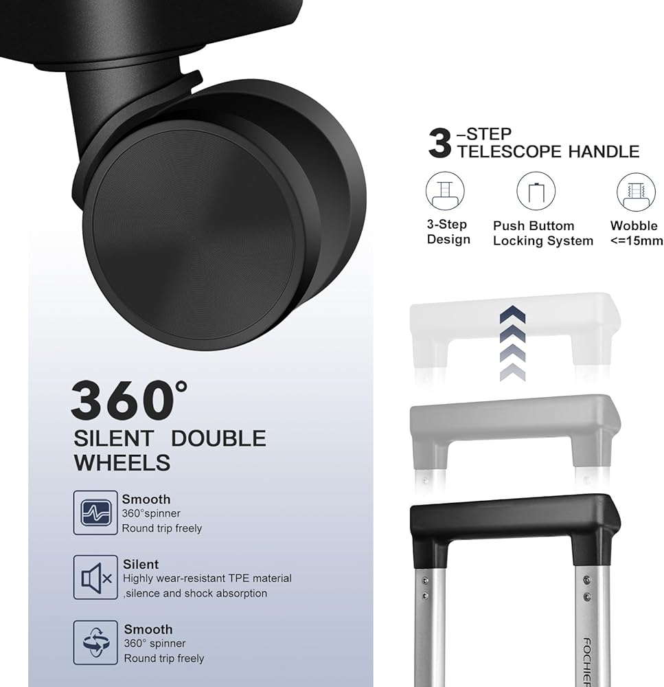 • ✈️【𝟮-𝗬𝗲𝗮𝗿 𝗪𝗮𝗿𝗿𝗮𝗻𝘁𝘆 & 𝗤𝘂𝗮𝗹𝗶𝘁𝘆 𝗦𝗲𝗿𝘃𝗶𝗰𝗲】Fochier مجموعات الأمتعة المكونة من 3 قطع تحصل على ضمان مجاني لمدة عامين. إذا كان لديك أي مشكلة، فلا تتردد في إعلامنا بذلك. سيقوم فريق خدمة العملاء بالرد خلال 12 ساعة.