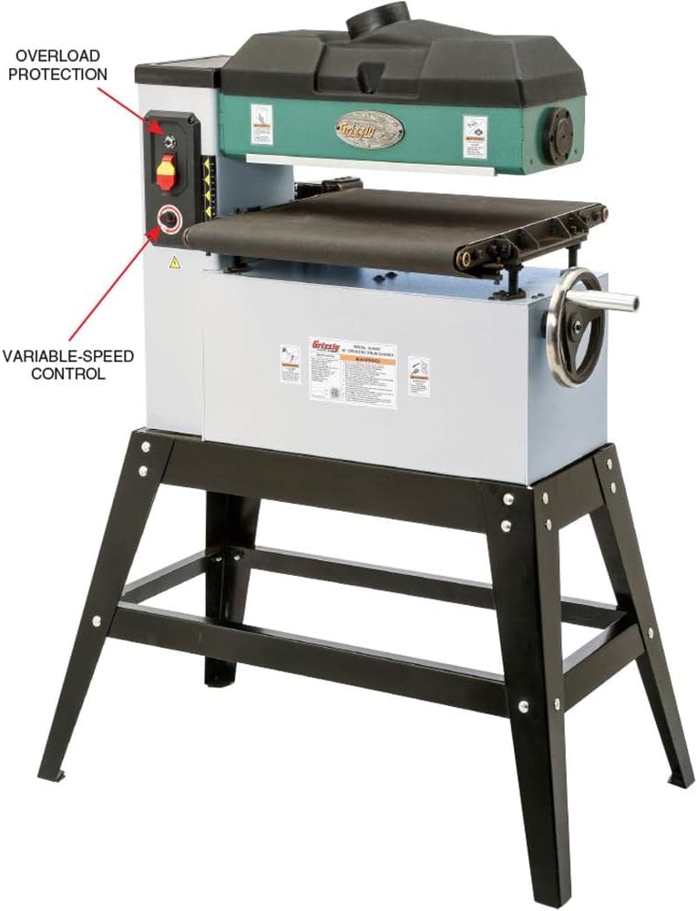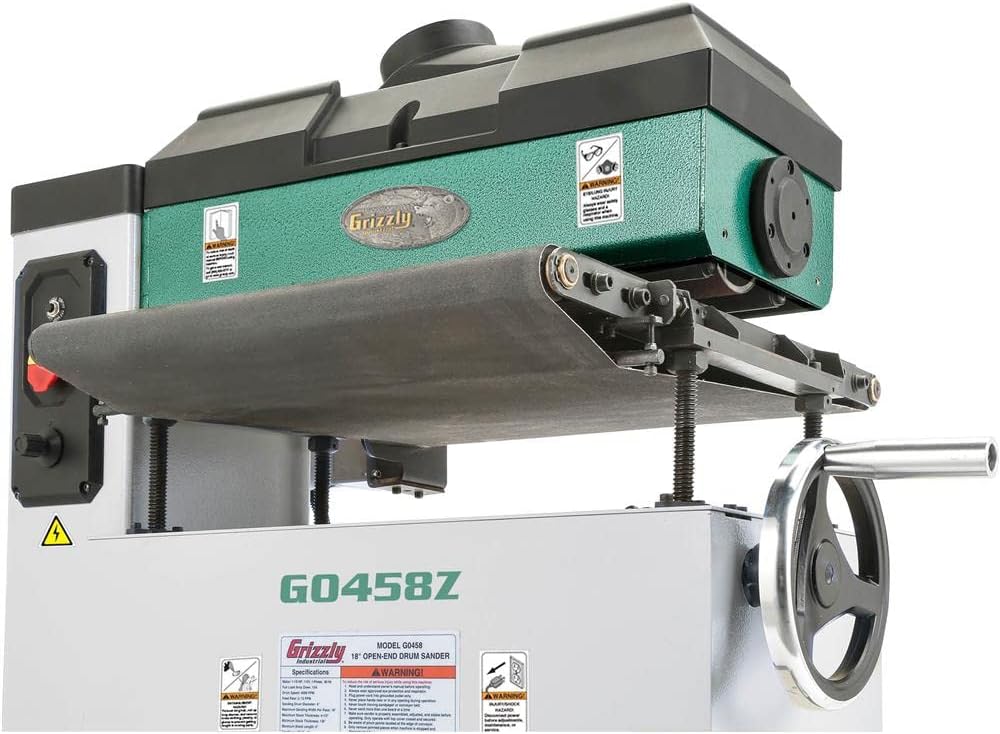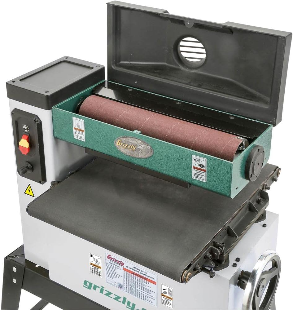 Grizzly Industrial G0458Z - ماكينة سنفرة أسطوانة مفتوحة مقاس 18 بوصة 1-1/2 HP مع تغذية VS