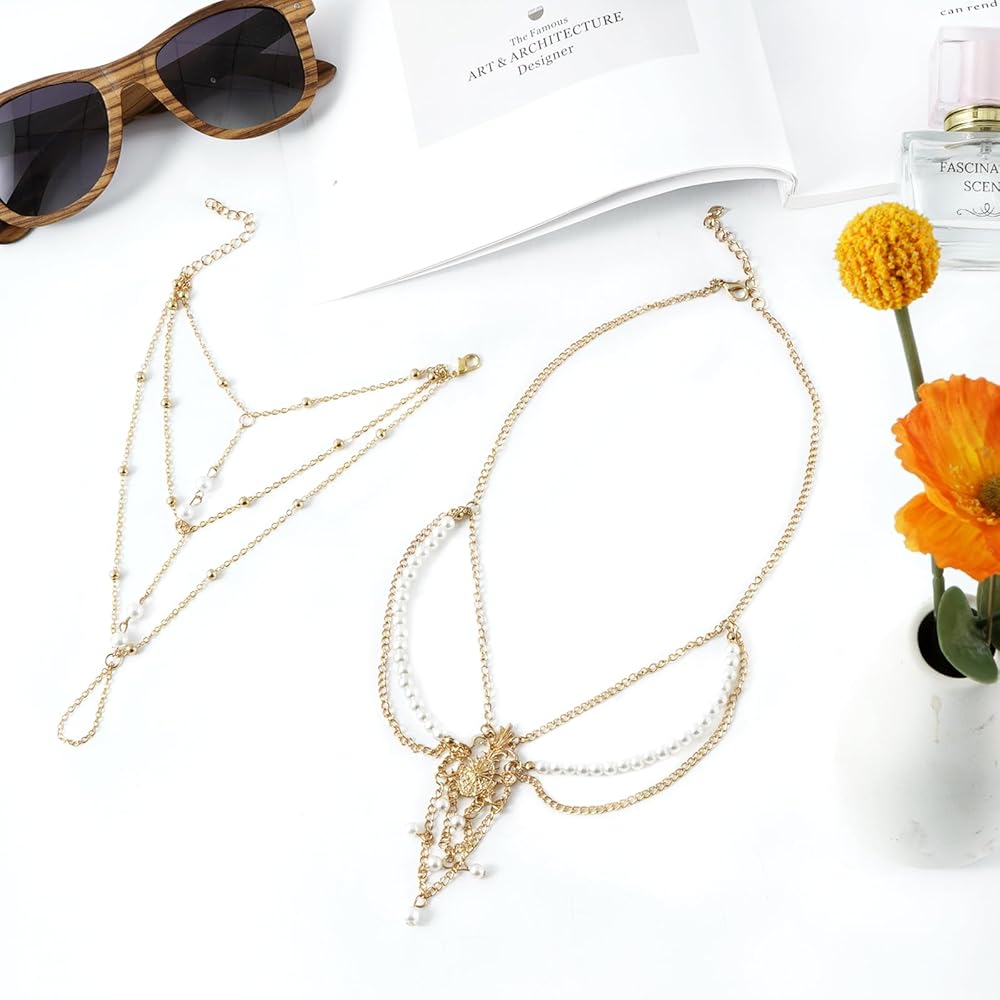 رقيقة وساحرة: سلسلة الشعر المطلية بالذهب هذه مزينة باللؤلؤ الصغير القديم، تضيف شعورًا جماليًا ليدك أو رأسك، وتجعلها جذابة ورائعة. الحجم بحرية يجعله يمكن تثبيته على رأسك ويناسب بشكل مثالي. يمكنك تعديل العقدة بنفسك، وحجم المنتج متغير، مناسب للفتيات والنساء من جميع الأعمار.