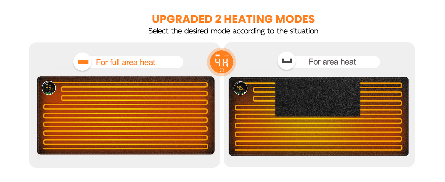 🔥(وضعان للتدفئة محسّنان): يتم تسخين الوسادة بأكملها، وهي مناسبة لك لأخذ استراحة الغداء، وتدفئة يديك وقدميك؛ يتم تسخين اللوحة الجزئية، ولا يتم تسخين مركز السجادة، حيث تضع جهاز الكمبيوتر الخاص بك، بحيث يمكنك زيادة سخونة جهاز الكمبيوتر الخاص بك بسبب ساعات العمل الطويلة.