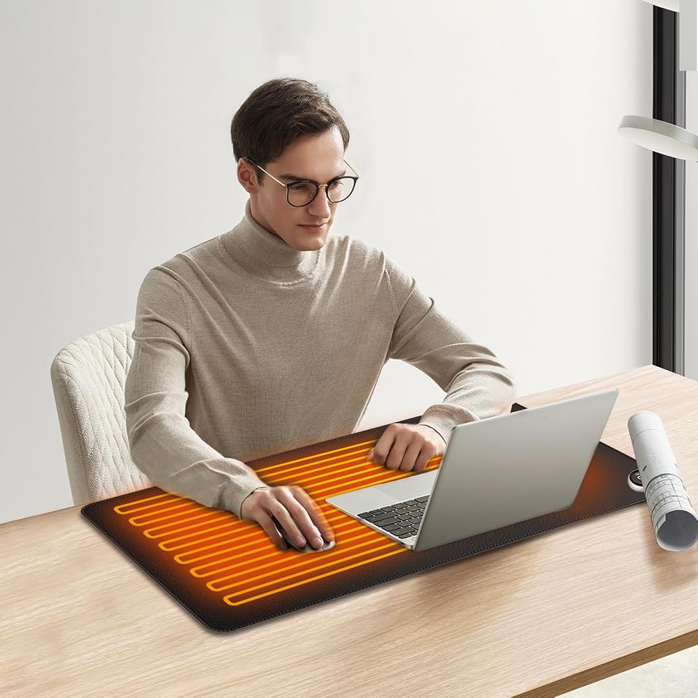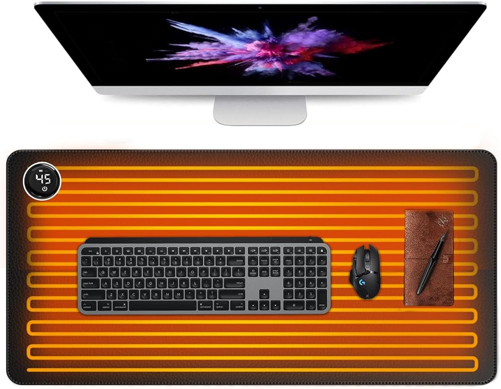 لوحة ماوس ساخنة، وسادة مكتب دافئة مطورة 2023 مع وضعين للتدفئة، حصيرة ماوس ألعاب كبيرة، لوحة ماوس كهربائية للتدفئة/لوحة لوحة مفاتيح ساخنة، ملحقات المكتب والمنزل، 31.5 بوصة × 13 بوصة