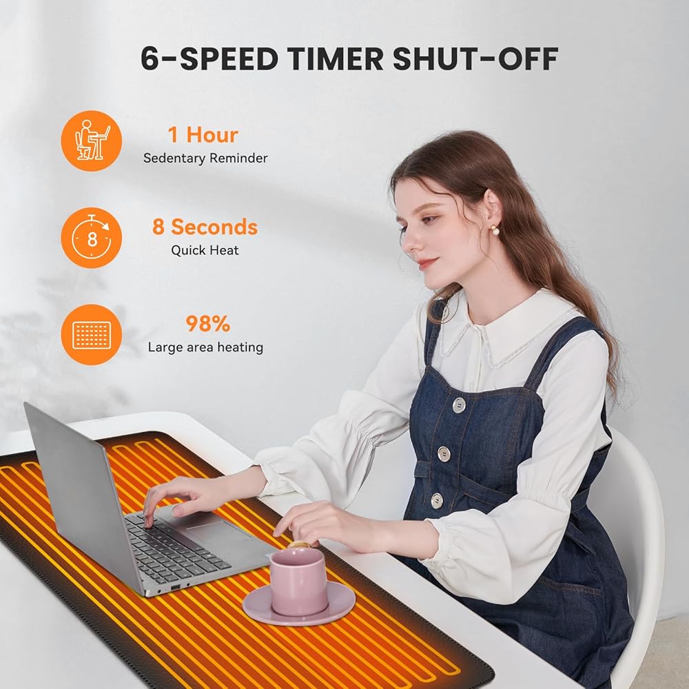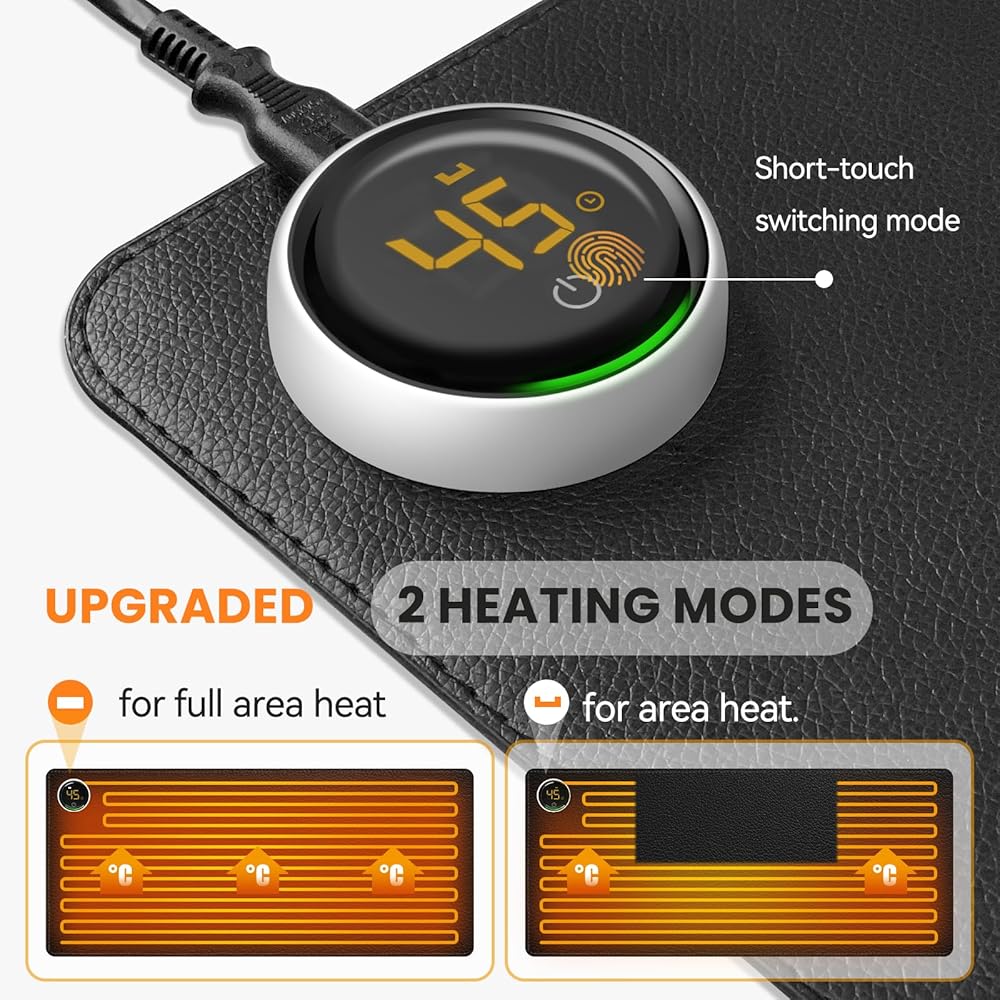 🔥【لوحة ماوس مُحسَّنة لعام 2023】لوحة المكتب الساخنة عالية الجودة للوحة المفاتيح والماوس معتمدة بأمان من قبل CE وUL وFCC. نحن نستخدم طبقة تسخين من الكريستال الكربوني كمادة تسخين، وهي رقيقة جدًا وناعمة وذات كفاءة تسخين عالية، وتسخين ثابت وموحد، مما يجعل بساط المكتب الدافئ هذا يسخن بسرعة في 8 ثوانٍ، وتزيد مساحة التسخين عن 98%، و مع عمر خدمة طويل.