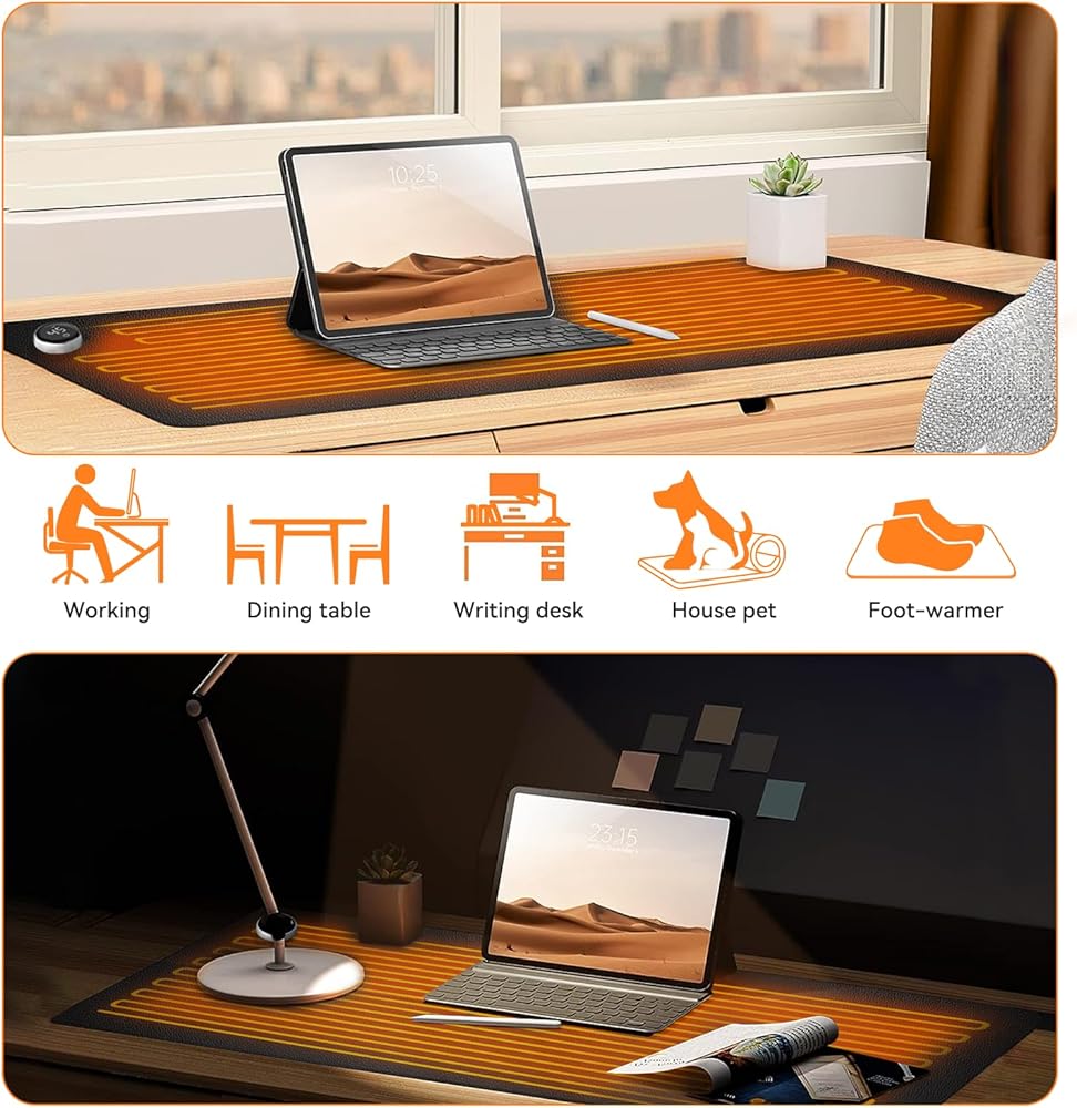 ✅[وسادة ماوس متعددة الوظائف] يمكن استخدام وسادة المكتب هذه على مدار العام، عندما يتم إيقاف تشغيل المفتاح، يمكن استخدام سطحها المريح والأملس كلوحة ماوس، ولوحة لوحة مفاتيح، ووسادة مكتب، ونشافة ولوحة كتابة. عند التبديل قيد التشغيل، يمكن استخدام سطحه الدافئ كسجادة مكتب ساخنة، ولوحة مفاتيح ساخنة لتدفئة اليد، ولوحة ماوس ساخنة لتدفئة اليد، ووسادة تدفئة لكرسي المكتب وتدفئة القدم.