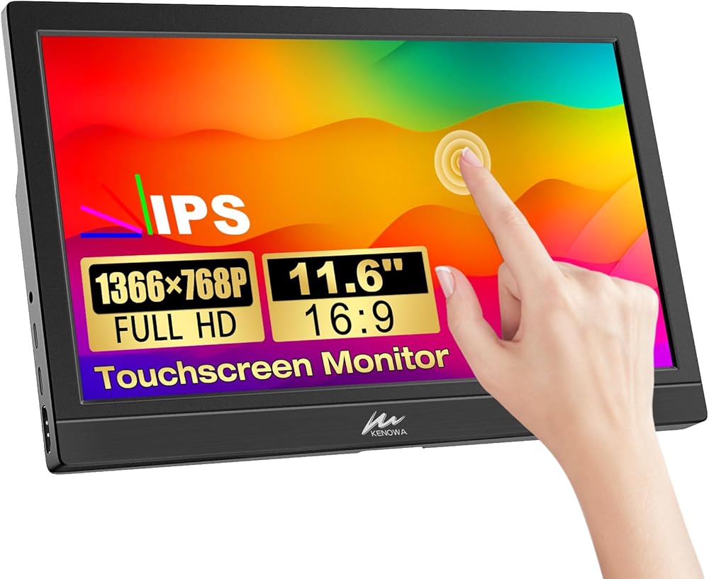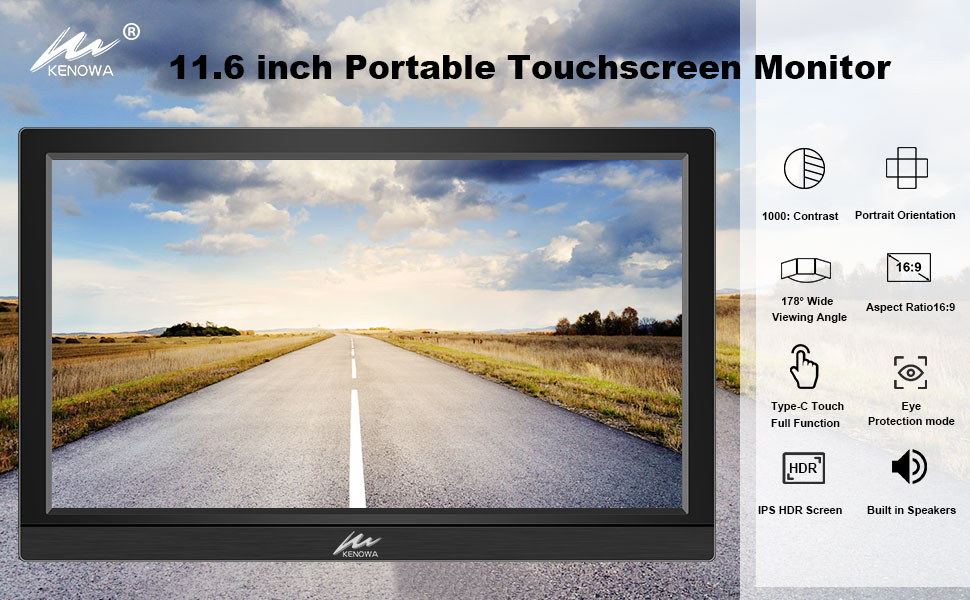 شاشة كينوا المحمولة التي تعمل باللمس مقاس 11.6 بوصة IPS شاشة الكمبيوتر المحمول FHD 1366x768P شاشة خارجية HDMI USB C منفذ HDR التوصيل والتشغيل شاشة السفر لأجهزة الكمبيوتر المحمول والكمبيوتر الشخصي والهاتف Mac Xbox PS4/5 Switch مكبرات الصوت المدمجة