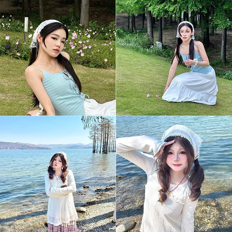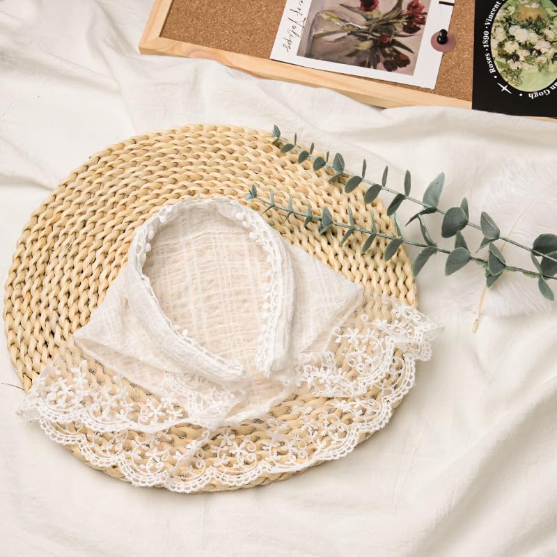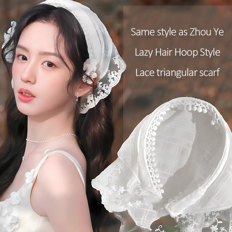 White Embroidery Lacehead Bandana for Women's Hair: White hair band head scarf for women white is embroidered with exquisite lace, the white floral embroidery will make you look more gentle and elegant, triangular head scarf can perfectly fit your head, can firmly stay in place, and you can adjust it freely, so handmade knitted triangle can fit all sizes of head circumference