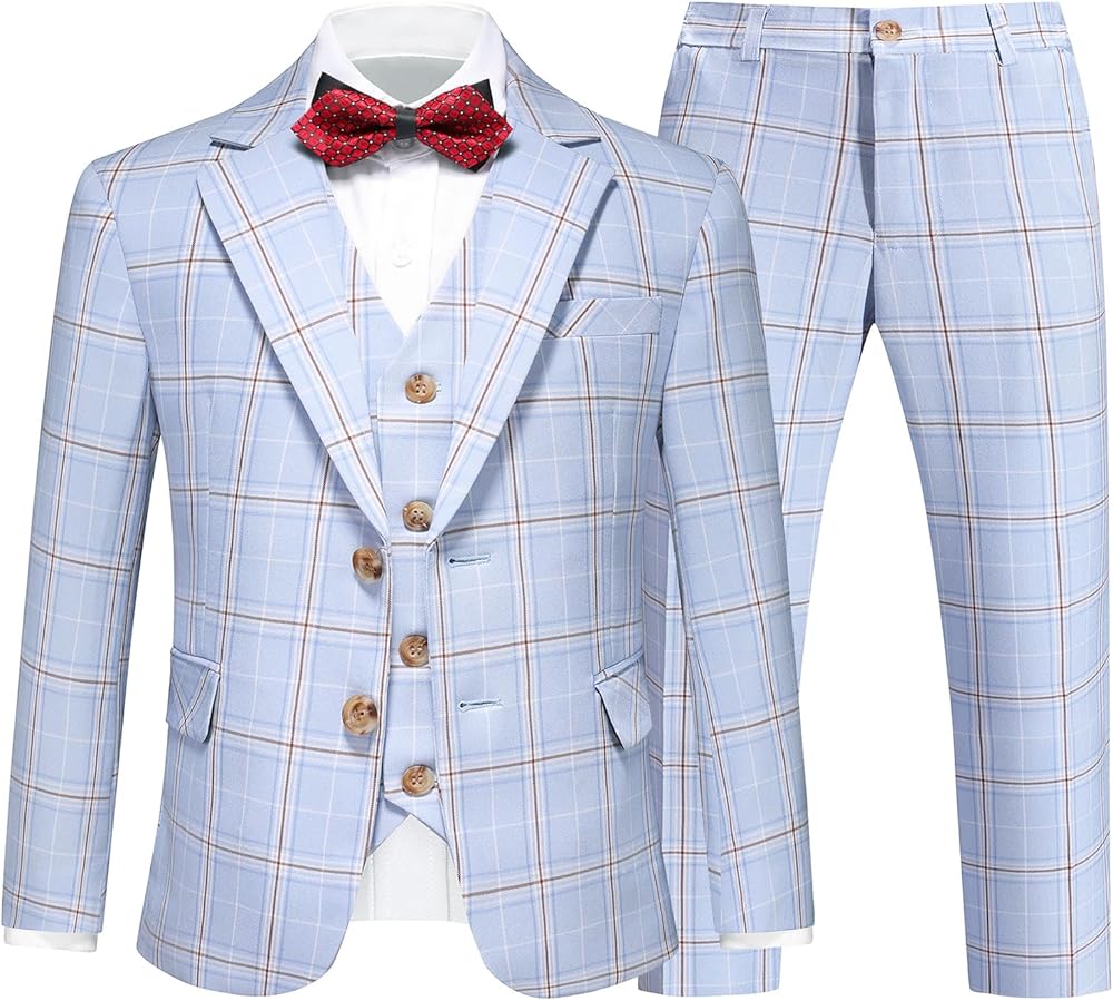 التصميم والأناقة: ارفع خزانة ملابس طفلك من خلال بدلة الأولاد الأنيقة المنقوشة ذات اللونين. متوفرة بمجموعة من الألوان بما في ذلك الأزرق الرمادي والأزرق الداكن والأزرق الفاتح، وتتميز بدلة السهرة للأولاد هذه بسترة كلاسيكية بفتحة تهوية واحدة بزرين مع جيوب عملية، مما يضيف الأناقة والعملية. النمط المنقوش الخالد وخيارات الألوان العصرية يجعلها البدلة المثالية للأولاد أو البدلة للأولاد الذين يحضرون أي مناسبة رسمية أو غير رسمية