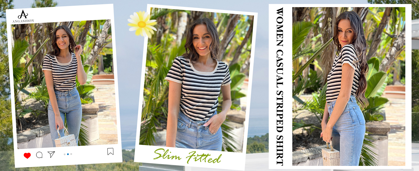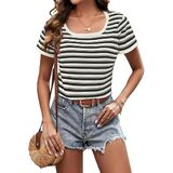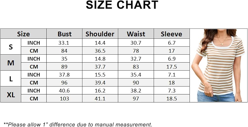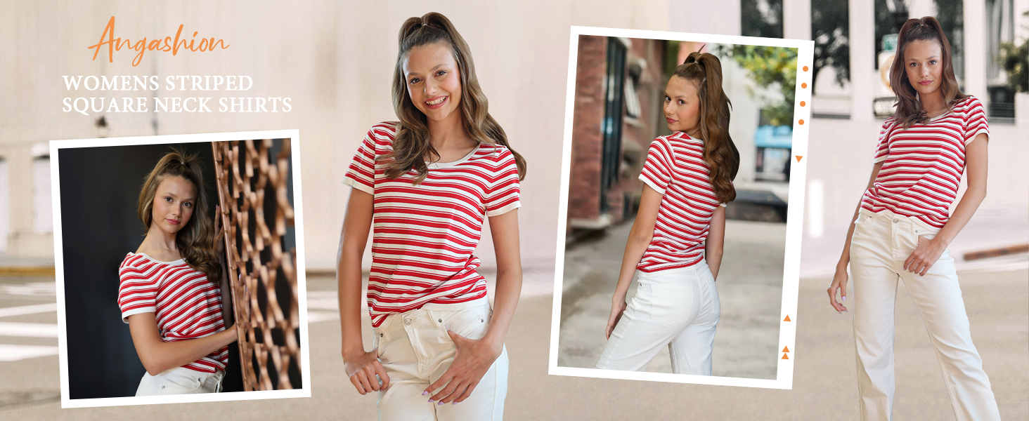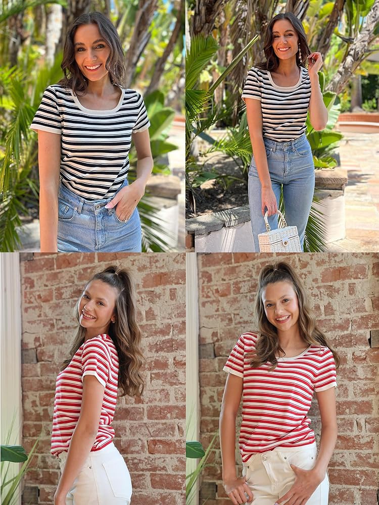 • تصميم فريد: تتميز القمصان النسائية ذات الأكمام القصيرة بنمط مخطط عصري وتصميم رقبة مربعة مريح، مما يجعلك تبدو أكثر شبابًا وحيوية؛ وفي الوقت نفسه، يوفر لك النسيج المضلع الناعم راحة أفضل.