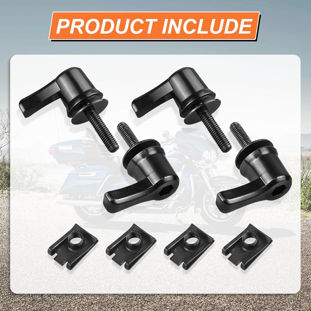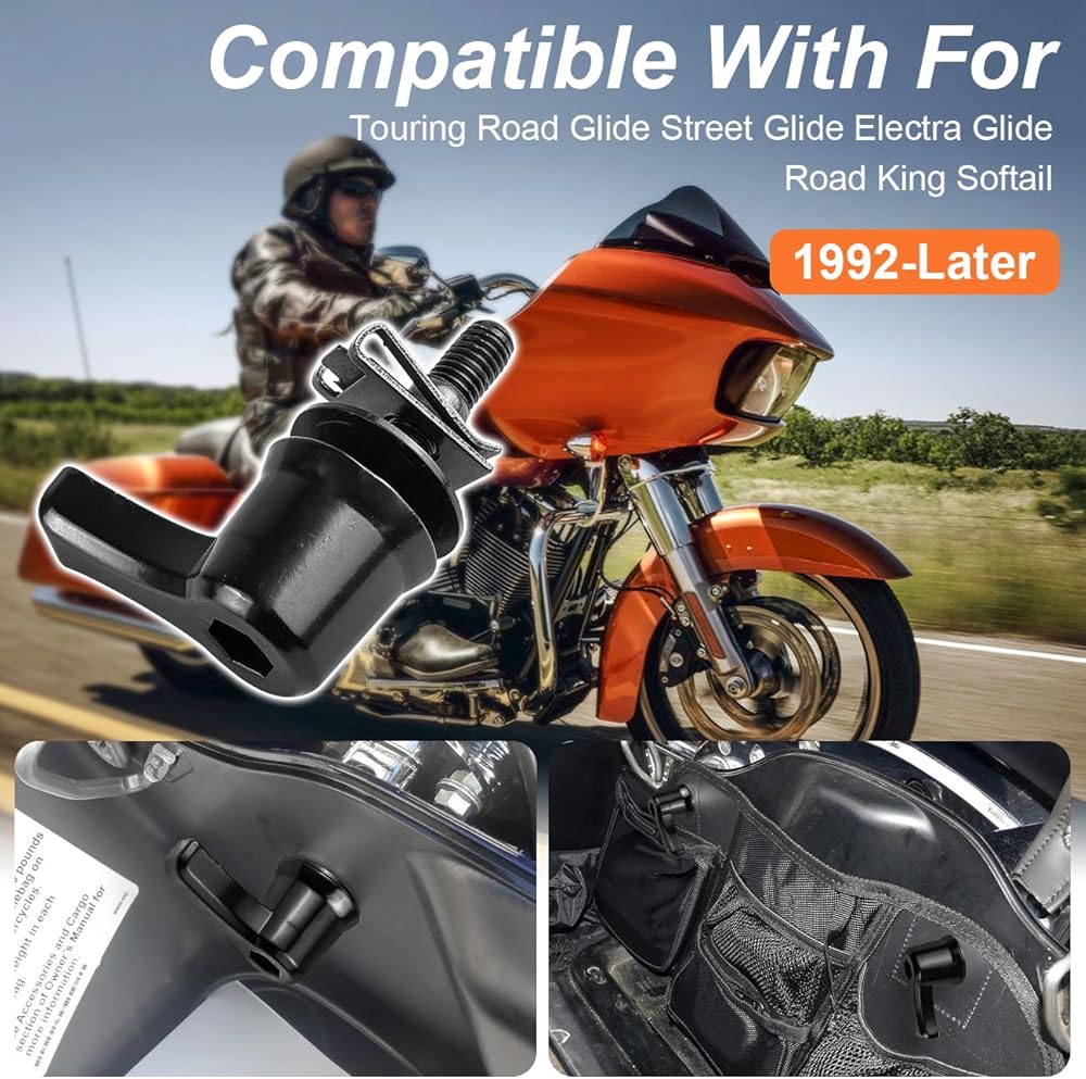 【التوافق: تتوافق صواميل تثبيت قفل رافعة السرج مع جميع أنواع Touring Road Glide Street Glide Electra Glide Road King Softail 1992-في وقت لاحق مع الطريقة القياسية لتأمين حقيبة السرج، استبدل مجموعة التثبيت على شكل رأس الكفالة القديمة.