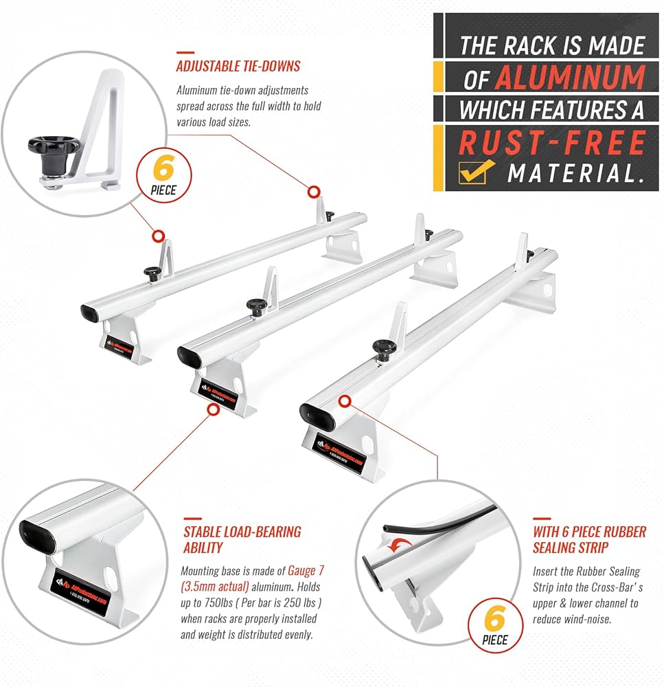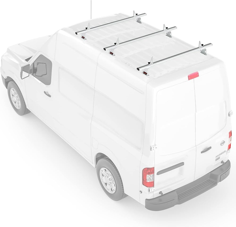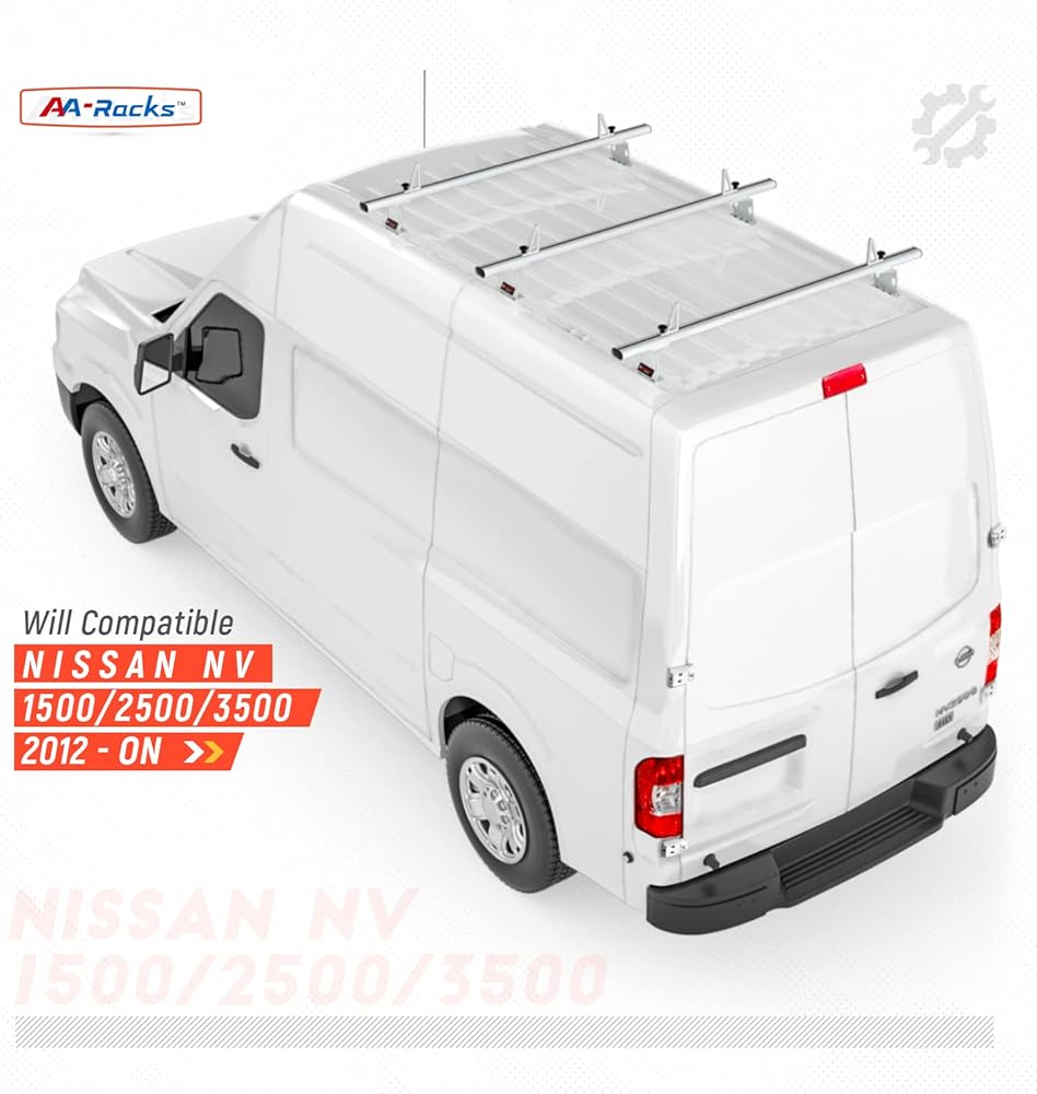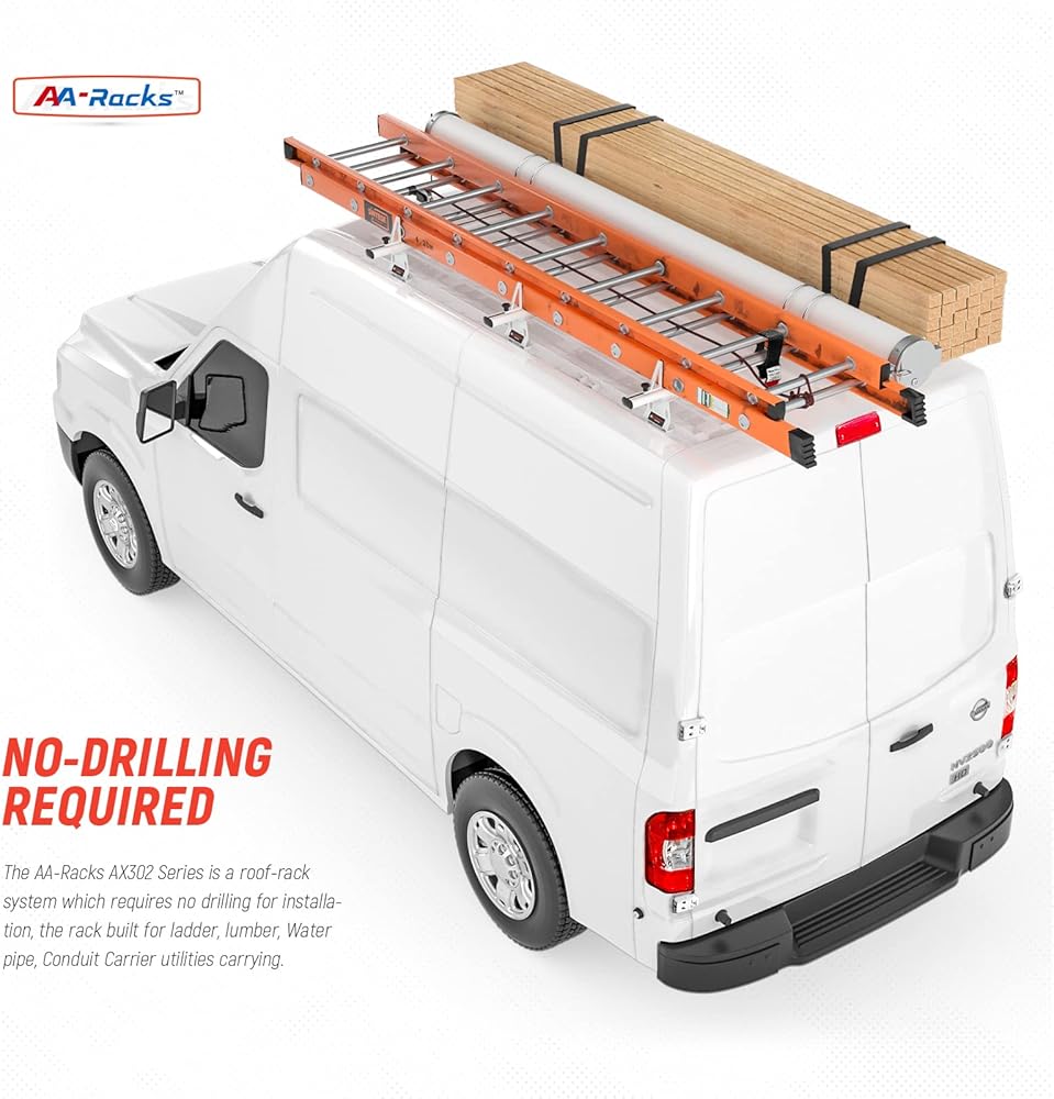 AA-Racks موديل AX302-NV متوافق مع NV 2012-On الألومنيوم 3 بار نظام رف سقف فان مع سدادة سلم أبيض