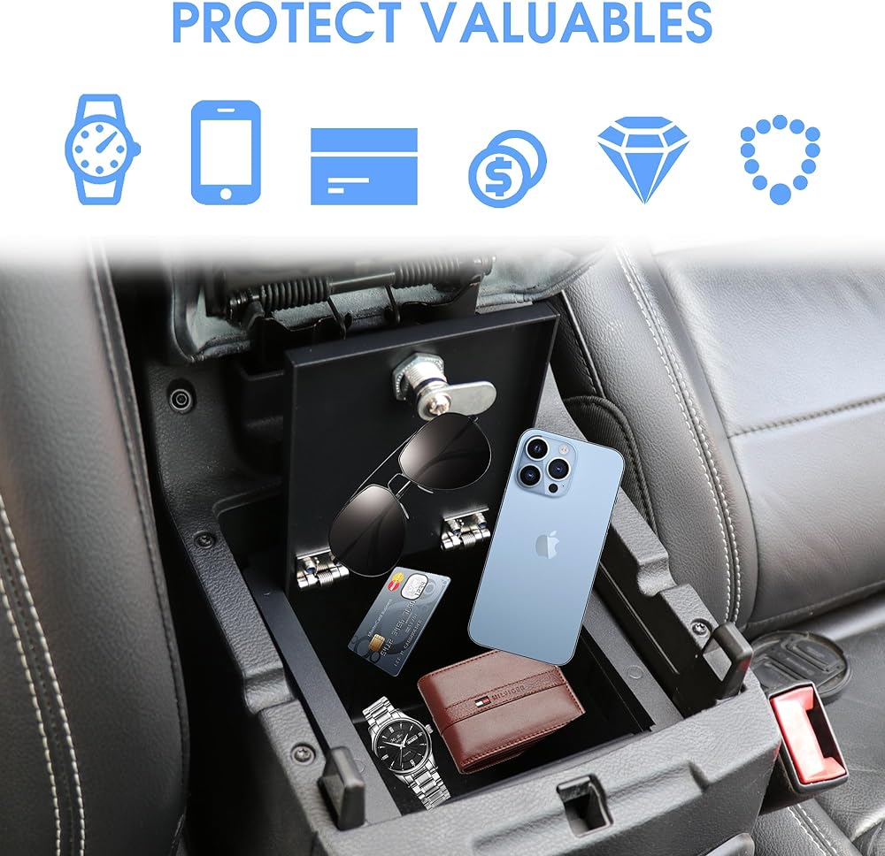 【حماية القيمة】المنظم الآمن للبندقية مع قفل كومبو مكون من 3 أرقام، يحمي هاتفك، ومحفظتك، وساعتك، ومجوهرات القلادة وغيرها من الأشياء الثمينة، حتى عند إزالة أبواب السيارة أو السقف، ويضمن أيضًا أقصى قدر من الأمان وراحة البال.