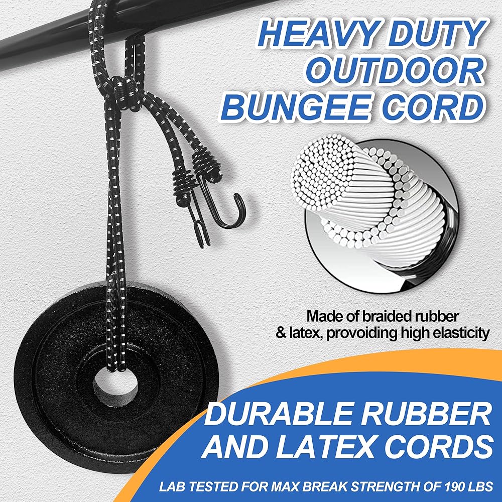 • قلب اللاتكس المتانة - أسلاك مطاطية سوداء من Hlogree مصنوعة من المطاط المنسوج واللاتكس مما يوفر مرونة عالية. يضمن البناء المطاطي الطبيعي الممتاز أقصى قدر من القوة وطول العمر في هذه الحبال المطاطية شديدة التحمل في الهواء الطلق، وهي مثالية لتأمين المعدات الخارجية والأقمشة والمزيد. تحتوي خطافات DOUBLE-J على قلب معدني 3 مم لمزيد من القوة. مغطى بالطلاء الكهربي، يضمن كل خطاف سلك رحلة خالية من الخدوش أثناء التخييم والتجديف وركوب القوارب والسفر.