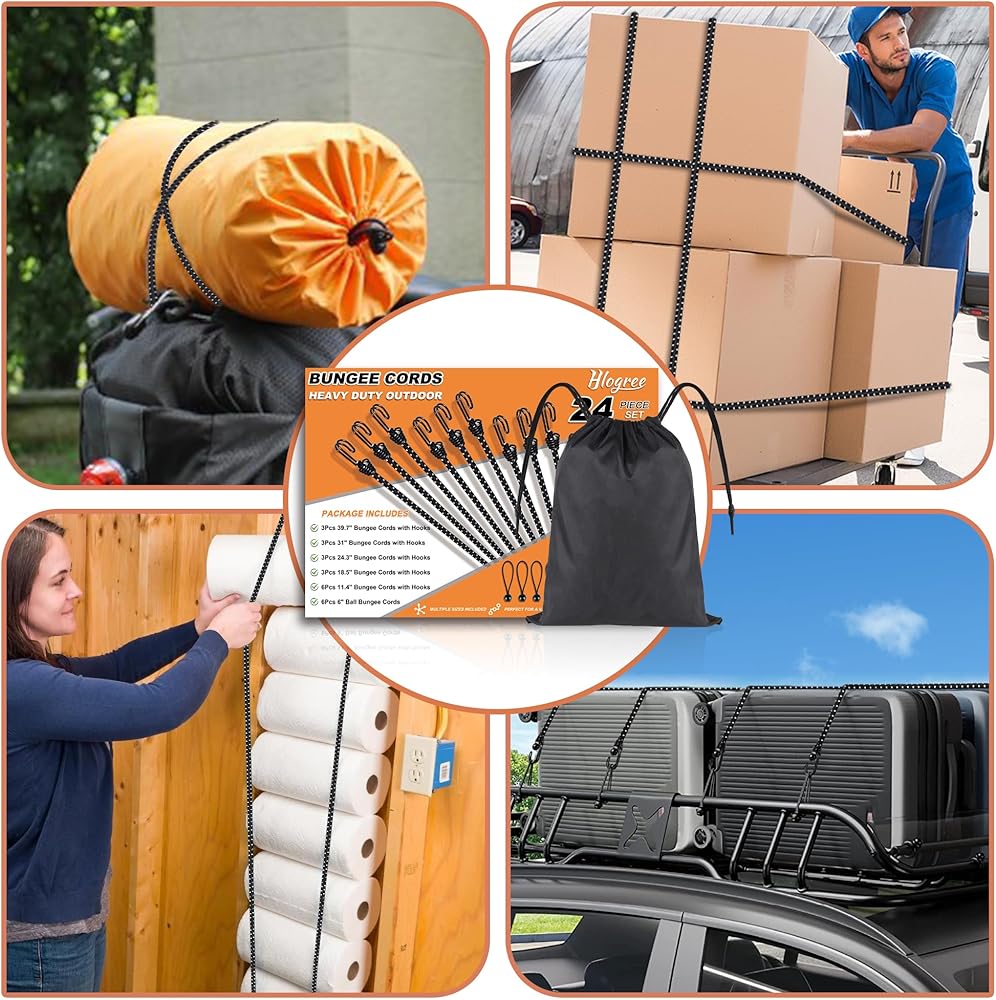 • استخدام على نطاق واسع - سواء كنت تقوم بالتعبئة لرحلة تخييم، أو تخزين العبوات في المرآب، أو الصناديق المتحركة، أو تثبيت العناصر على ATV، أو الدراجة، أو القارب، أو الدراجة النارية، أو المقطورة، أو قوارب الكاياك، أو سيارات الدفع الرباعي - يوجد حبل بنجي للمساعدة في صنع يحدث ذلك.