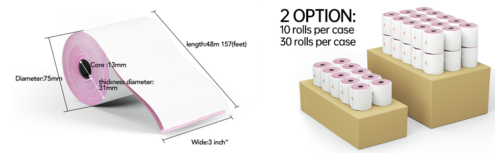 يعد هذا الورق خيارًا ممتازًا للمؤسسات الكبيرة والمتوسطة الحجم التي تتطلب حلاً موثوقًا وفعالاً من حيث التكلفة لتلبية احتياجات طباعة الإيصالات الخاصة بها. مثالية للشركات مثل متاجر البيع بالتجزئة والمطاعم وشركات الخدمات اللوجستية التي تطبع كميات كبيرة من الإيصالات وتحتاج إلى منتج ذو مظهر احترافي. حجم لفات ورق الإيصالات العامة 75 مم * 75 مم ينطبق على نطاق واسع على الآلات المختلفة، يرجى التحقق من الحجم المطبق لجهازك قبل الشراء.