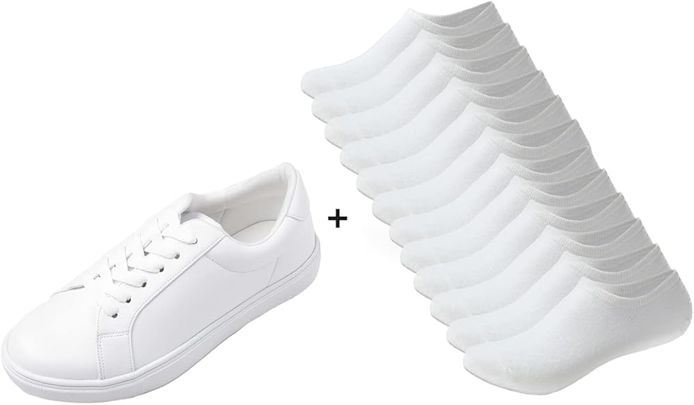 White Lace-Up Sneaker outfit shoes 1pair boundle with 6 pairs no show White Socks ,Better deals than buying individually.