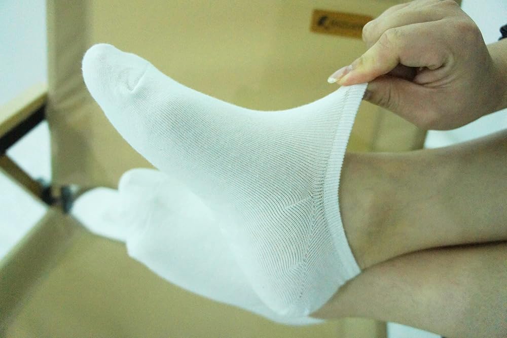 • Sock Composition is 6.5% cotton 31%polyester 2.5% spandex , women's shoe sizes 6-10 ,There are non slip silicone grippers inside the heel, which help keep the sock in place and don't slide down into the shoe.