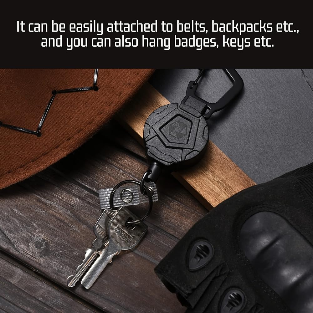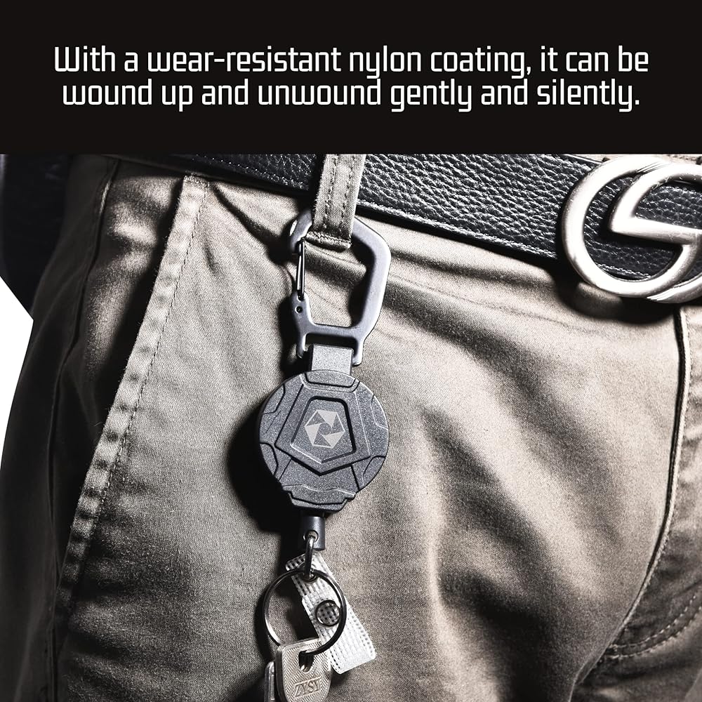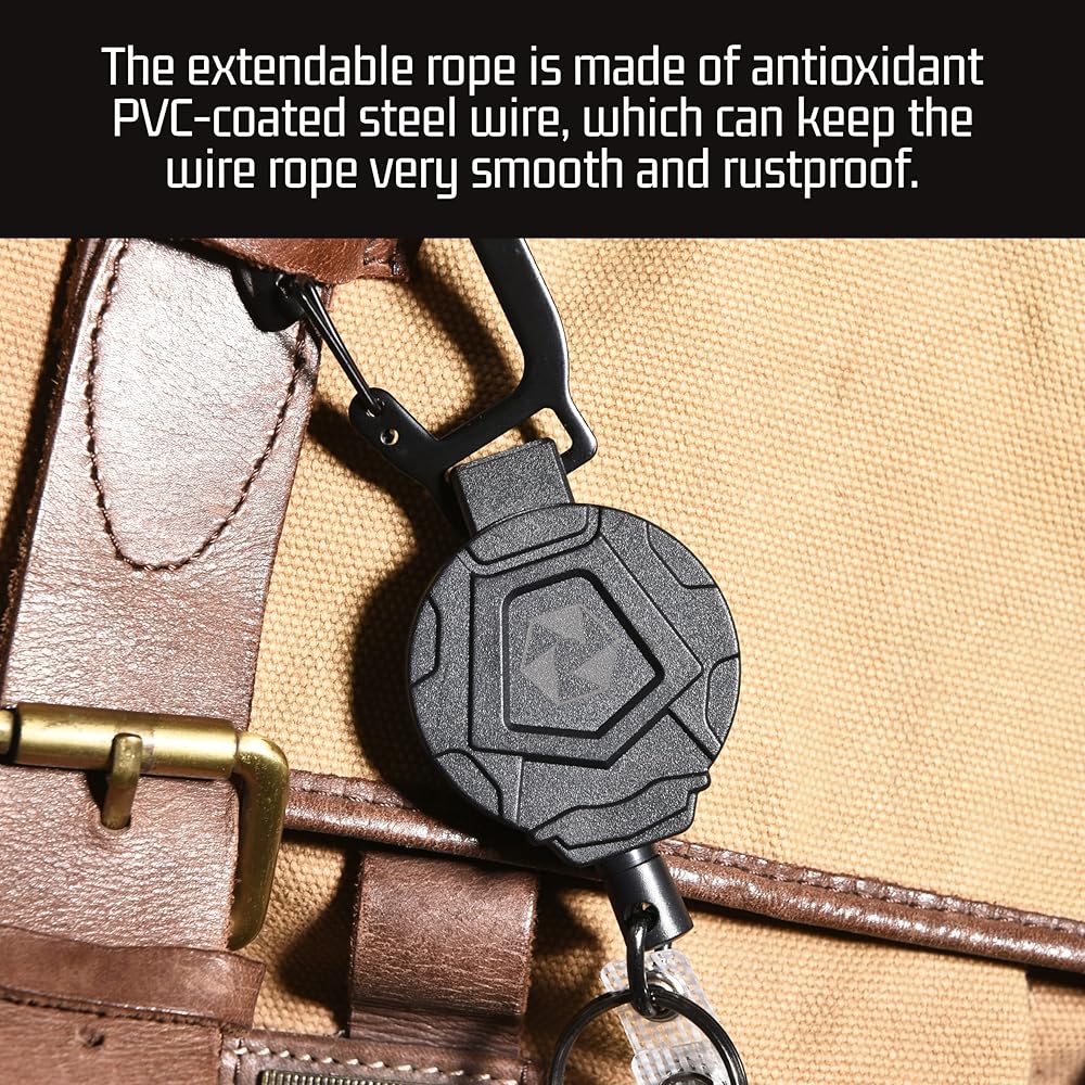 مثالية للعمل والترفيه: سلسلة مفاتيح العمل هذه هي رفيق ممتاز لأي شخص يحتاج إلى التنقل أثناء العمل أو السفر أو التخييم. يتم لفه بلطف وصمت ويستريح بسبب طلاء النايلون المقاوم للتآكل. كل من حامل الميكروفون القابل للسحب وشريط الشارة القابل للسحب، مثالي لأي مناسبة