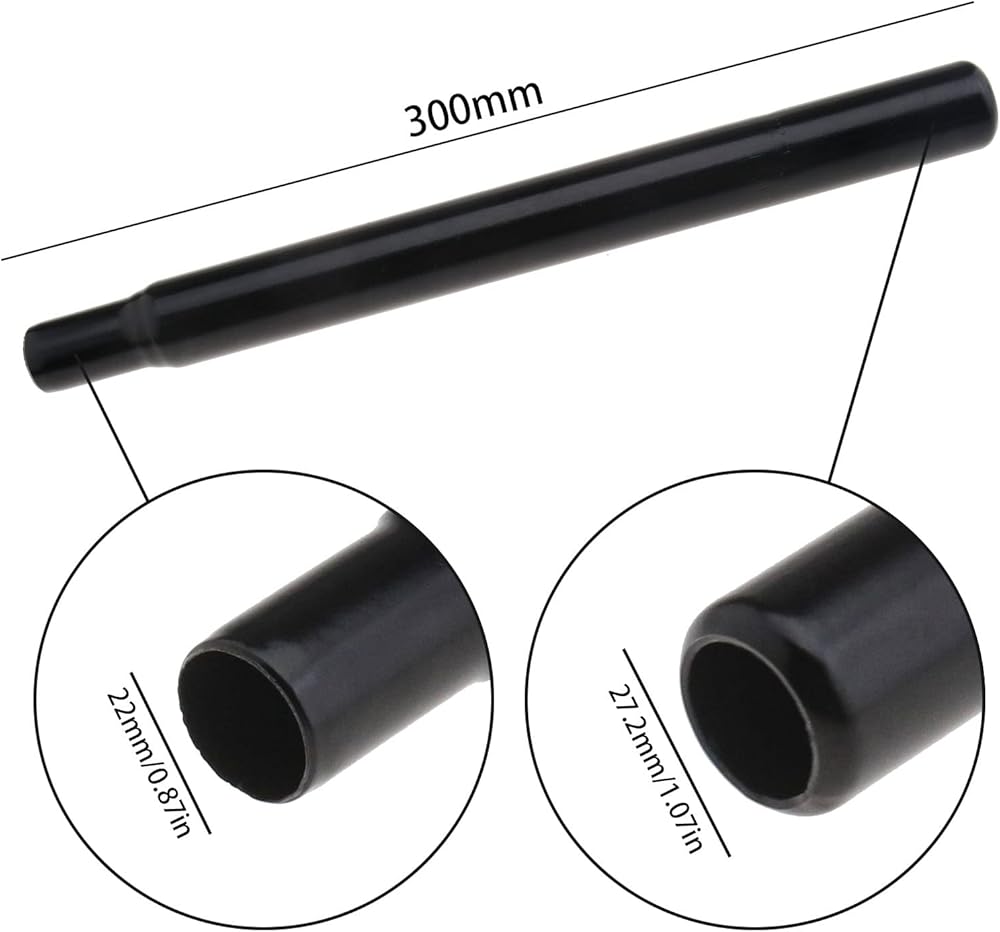 -The outer diameter of the seat tube connected to the bicycle saddle end is 22mm/0.87inch, the outer diameter of the seat tube connected to the bicycle frame end is 27.2 mm/1.07 inch. The Total length is 300mm/11.81inch.