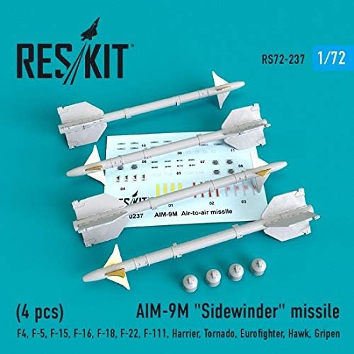 AIM-9M "Sidewinder" missile (4 PCS) F4, F-5, F-15, F-16, F-18, F-22, F-111, Harrier, Tornado, Eurofighter, Hawk, Gripen Manufacturer: ResKit (Ukraine) Serial number: RS72-0237 Scale: 1/72 Type: Upgrade set for aviation Material: Resin Kit description: Unpainted, Unassembled, Kit do not contain paints and glue Condition: New in Box Rekomended kit : Academy, Hasegawa, Airfix, Tamiya, Trumpeter, Fujimi, Italeri, Revell, Hobby Boss Arms and weapons box