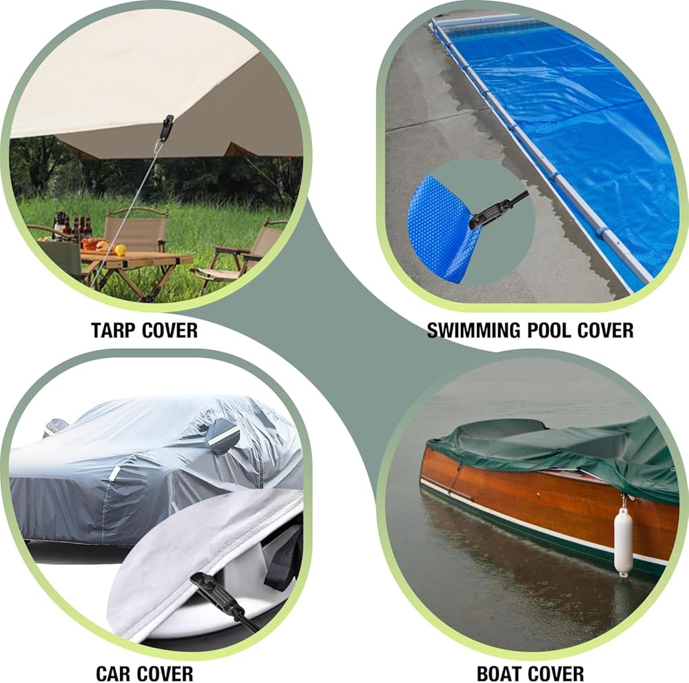 مقاومة قوية للرياح: بفضل التصميم الفريد الذي يتحمل الرياح القوية، توفر مشابك XIANGLE Tarp Clips قوة تحمل فائقة. يمكن لهذه المشابك التعامل مع سرعات الرياح التي تصل إلى 60 ميلاً في الساعة، مما يجعلها مثالية للتخييم في الهواء الطلق وإعدادات الخيمة وأغطية حمامات السباحة.