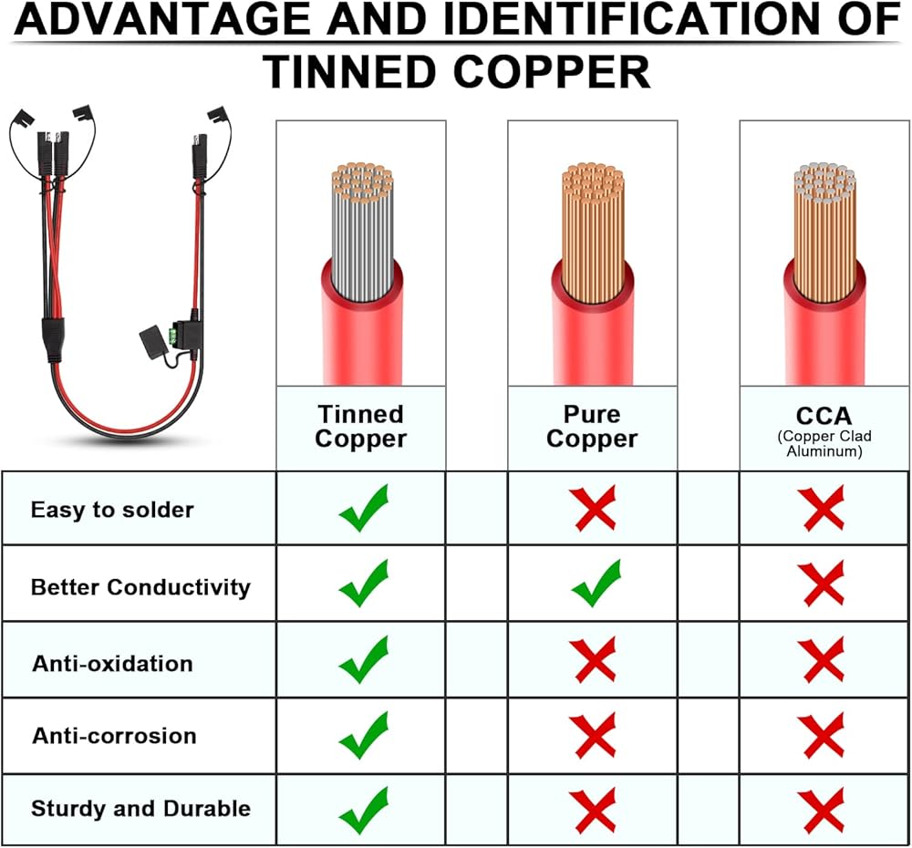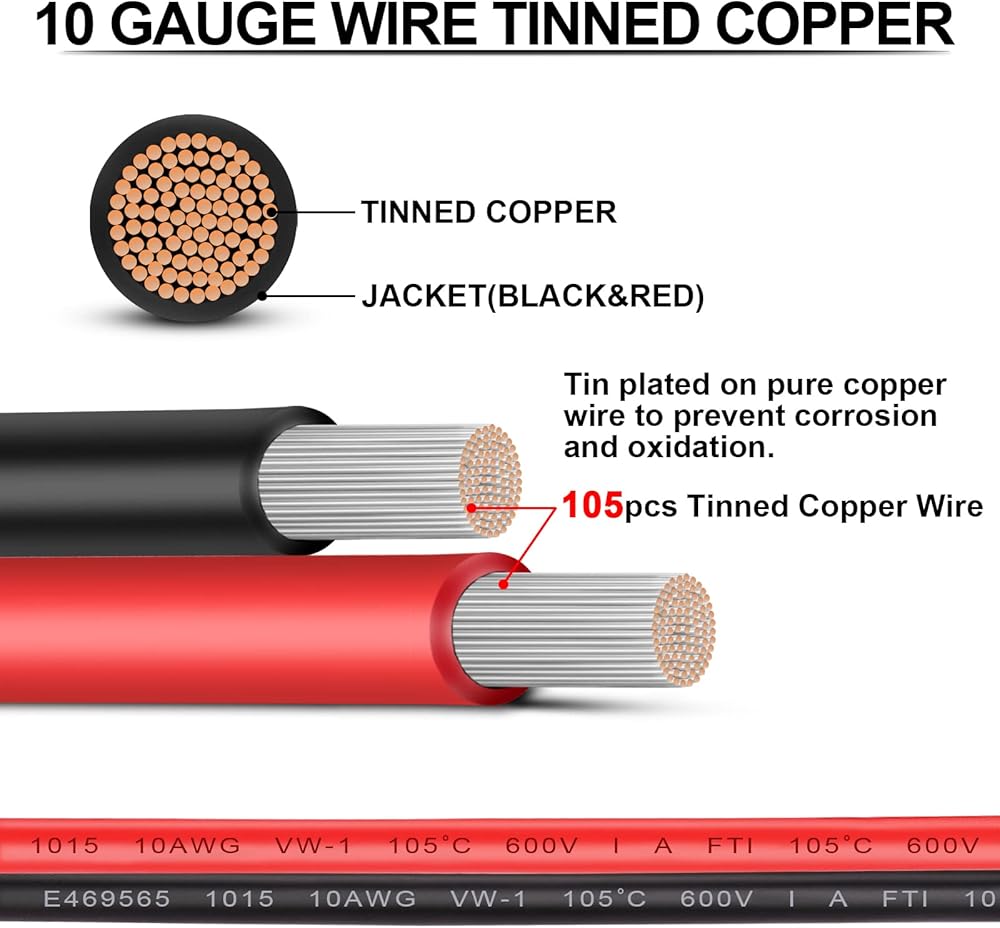 كابل SAE مصنوع من سلك نحاسي معلب 10AWG؛ طول الكابل: 0.6 م/2 قدم. سميكة ومرنة.