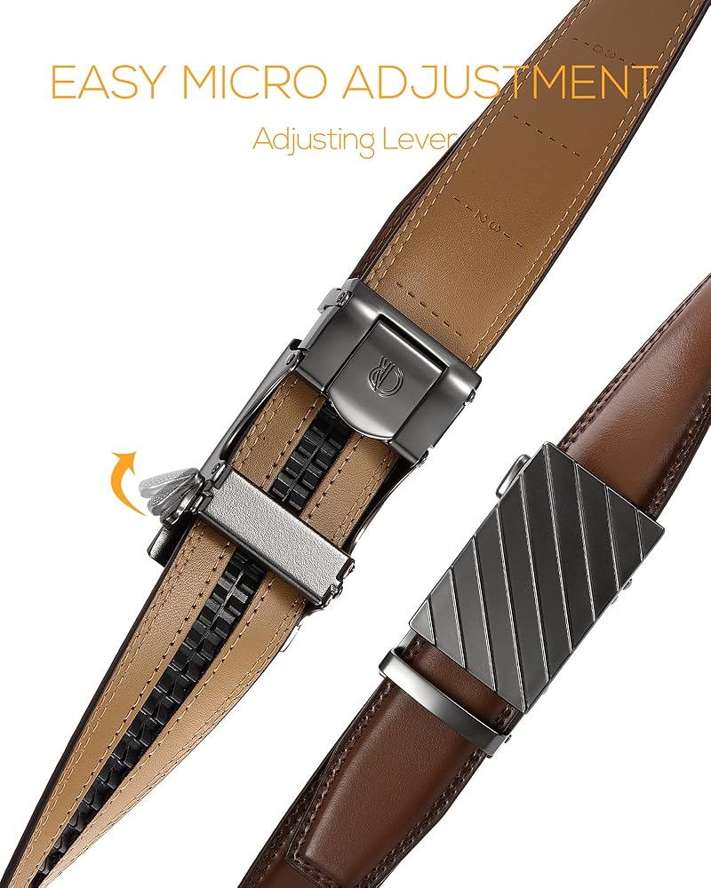 أناقة بدون مجهود: توفر آلية السقاطة للحزام الرجالي لدينا ميزة الانزلاق والقفل بسهولة، مع ضغطة بسيطة للفتح. تصميم السقاطة هذا للحزام الرجالي ليس عمليًا فحسب، بل يضيف أيضًا لمسة راقية إلى ملابسك اليومية.