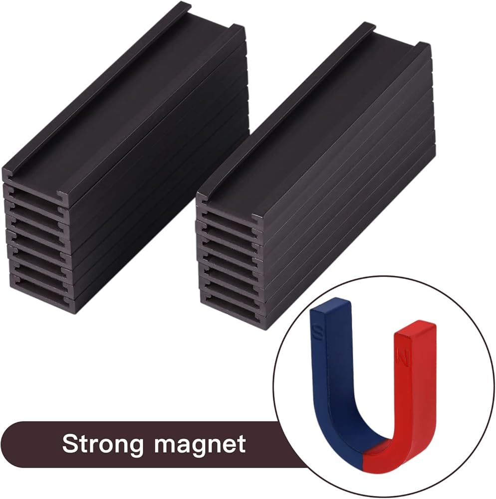• المواد: تتكون هذه الملصقات المغناطيسية من مغناطيسات مرنة على شكل حرف C مع دعامة مغناطيسية مطاطية كاملة، ويمكن إدخال ورق الملصق والأغشية البلاستيكية في حامل البطاقة المغناطيسية بسهولة ويمكن وضعها على أي سطح معدني وتغيير الملصق بسهولة