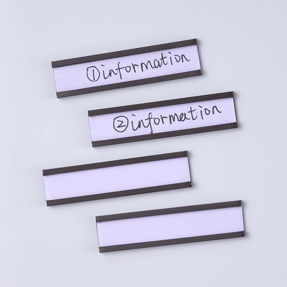 • تطبيق واسع: الحوامل المغناطيسية بلون أبيض وأسود بسيط، تناسب المكاتب وورش العمل والاستخدام اليومي، الطبقة الواقية شفافة ونظيفة للحفاظ على النص على الملصقات مشرقًا ونظيفًا لفترة طويلة