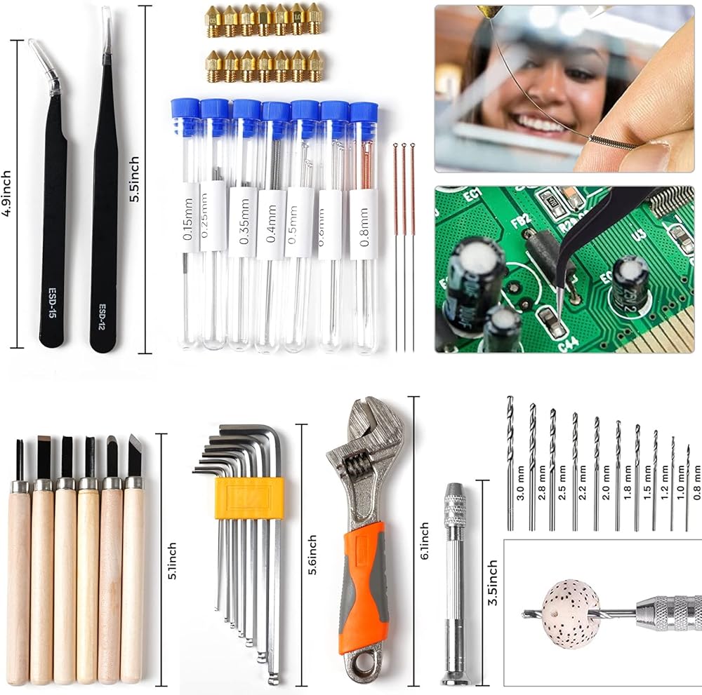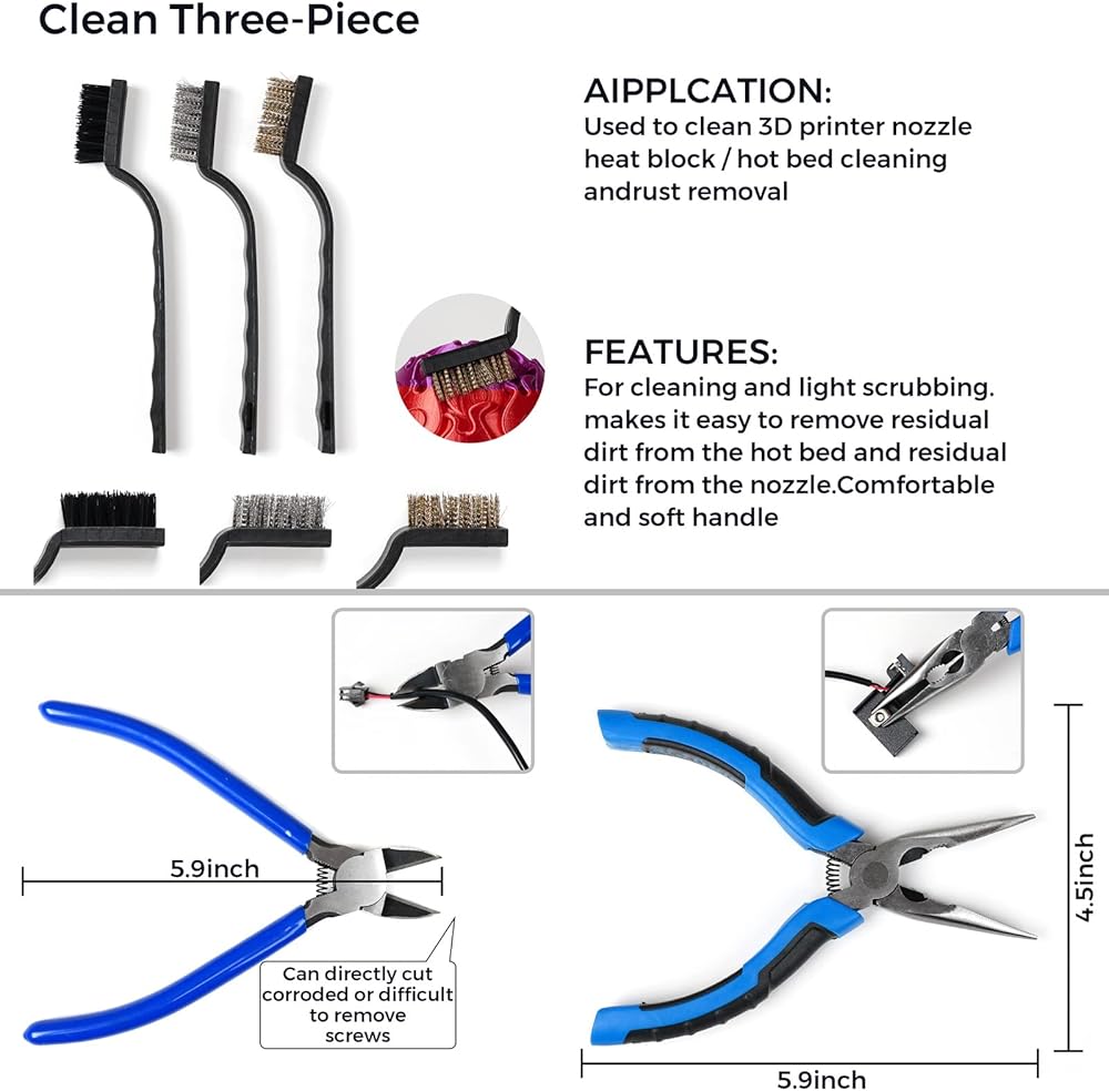 【مجموعة أدوات طباعة ثلاثية الأبعاد عالية القيمة】مجموعة طابعة ثلاثية الأبعاد لا تحتوي فقط على الأدوات الأساسية مثل الكماشات والمفاتيح والفرش الفولاذية والملاقط والمفكات والملفات وأدوات التلميع وأدوات التشذيب وغيرها من الأدوات، ولكنها تأتي أيضًا مع 7 أحجام مختلفة من الطابعة ثلاثية الأبعاد فوهات و7 أحجام متطابقة من إبر التنظيف، بإجمالي 244 منتجًا، الرفيق المثالي للطابعة ثلاثية الأبعاد والحرف اليدوية.