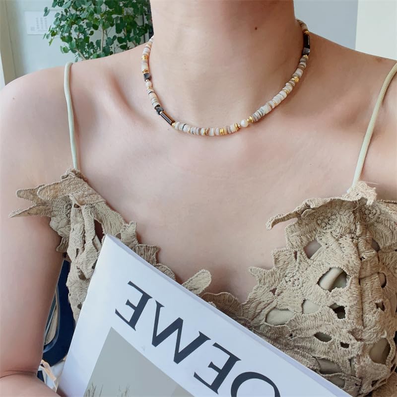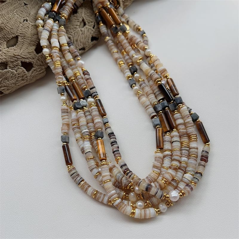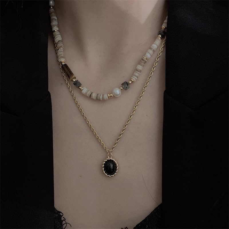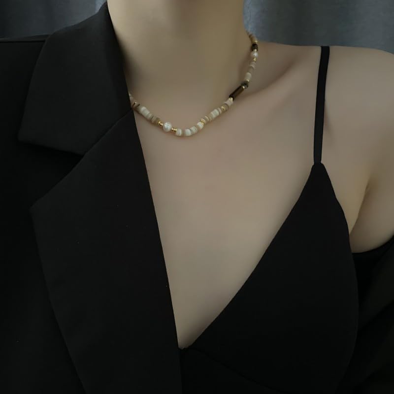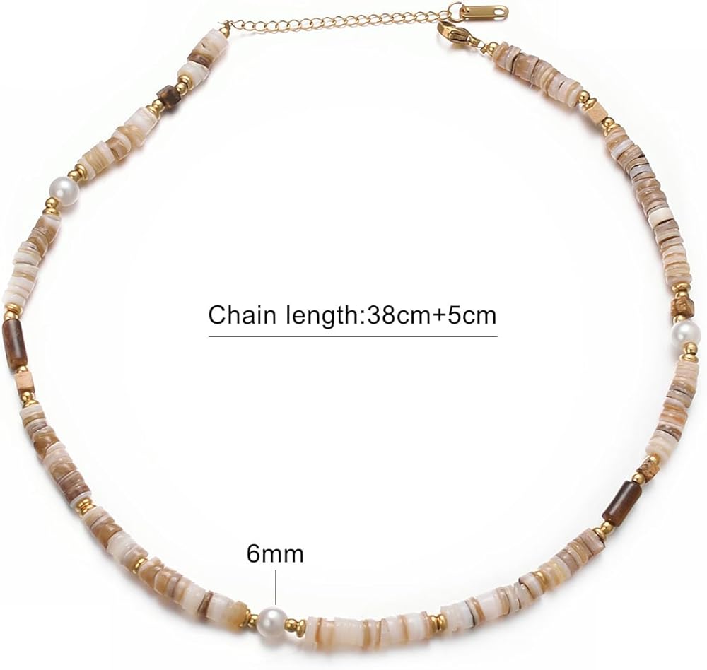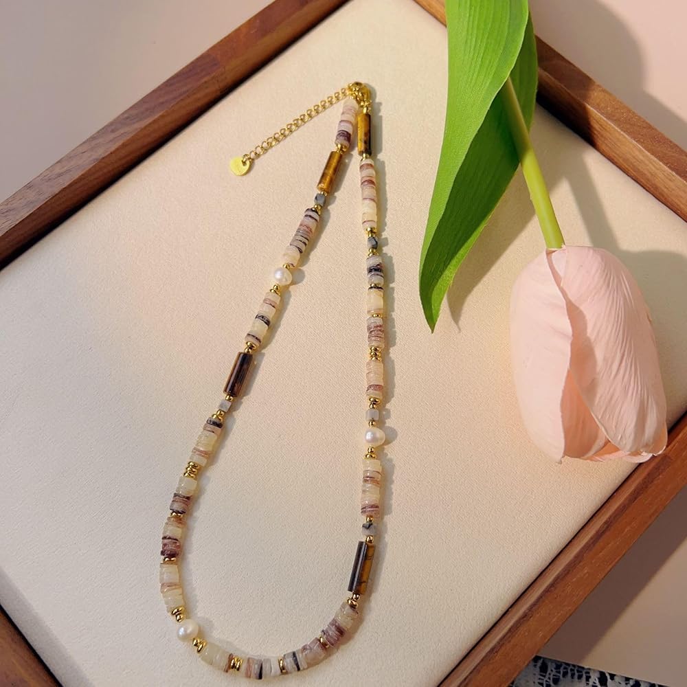 ❤تصميم كلاسيكي❤ هذا العقد المصنوع يدويًا من اللؤلؤ المصنوع من الحجر البني يتميز بالحيوية ويمكن ارتداؤه في أيام الصيف والنزهات وإجازات الشاطئ ويمكن ارتداؤه مع قلادات أخرى لتغليف رقبتك بهذه المجوهرات غير الرسمية اليومية. ارتديه بمفرده أو ضعيه فوق طبقة واحدة للحصول على مظهر أنيق يجذب المزيد من الاهتمام.