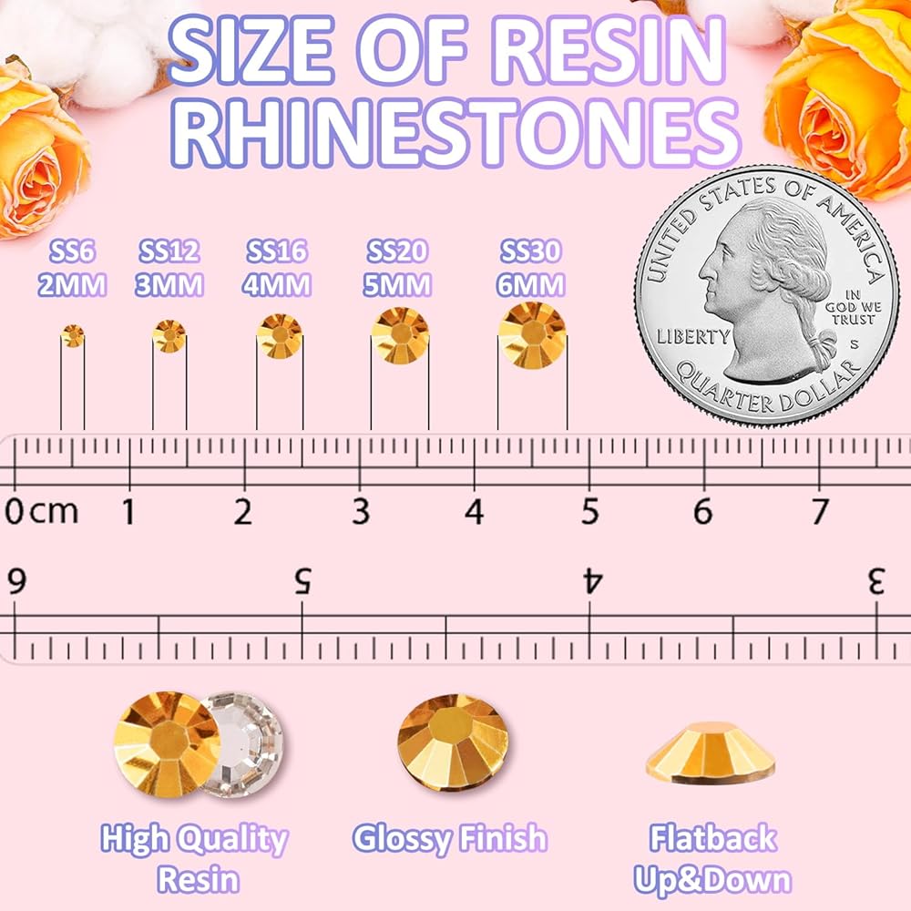 💎HIGHLIGHTS -- Our store also offers a variety of colors and sizes of resin rhinestones, these colors will give your crafts more possiblities, more shiny color scheme. A sufficient amount of resin gems are suitable for paving large area designs such as diamond paintings or cups. By choosing resin rhinestones with similar or contrasting colors, you can create color-coordinated or highly contrasting works, such as phone cases with gradient effect or colourful festival decorations.