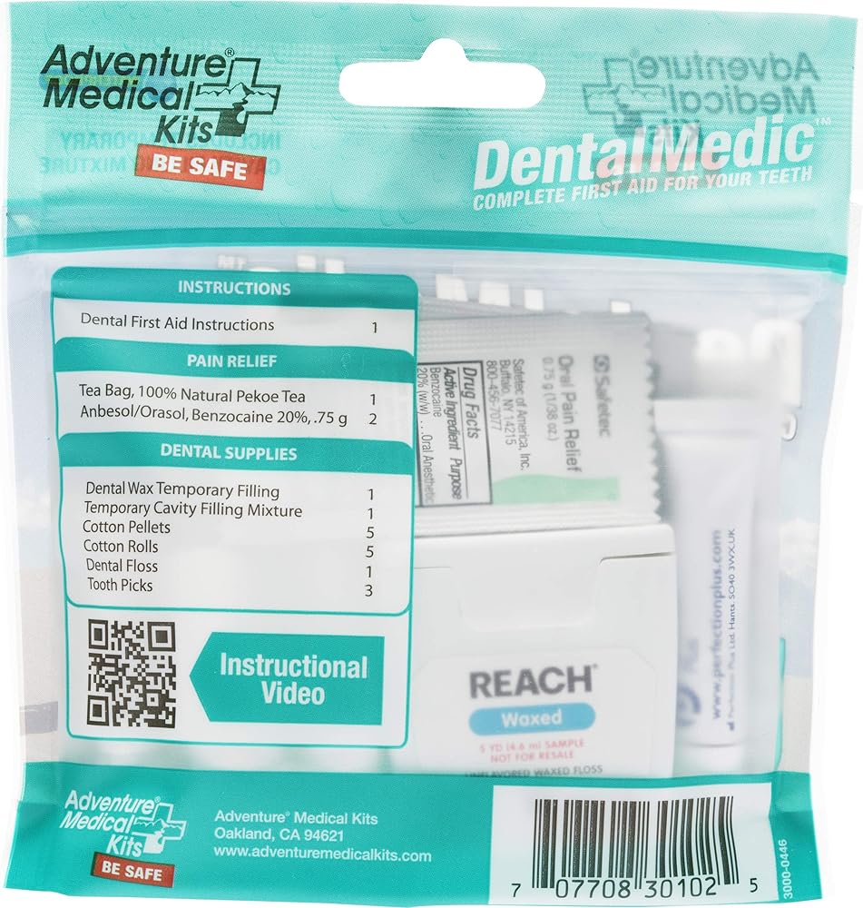 • The Adventure Medical Kits Dental Medic contains basic supplies like floss, cotton, and anesthetic