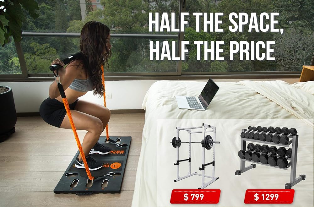 OVER $1,000,000 RAISED ON KICKSTARTER & INDIEGOGO: When designing the BodyBoss workout product we wanted to make sure that it was lightweight & compact, but still versatile enough to simulate the gym anywhere. By allowing this any exerciser who gets the BodyBoss Gym will be able to reach their goals, workout more consistently each week & perform any gym exercise they want anywhere they take the Fold Up VectorFit Platform and cloth covered resistance bands.
