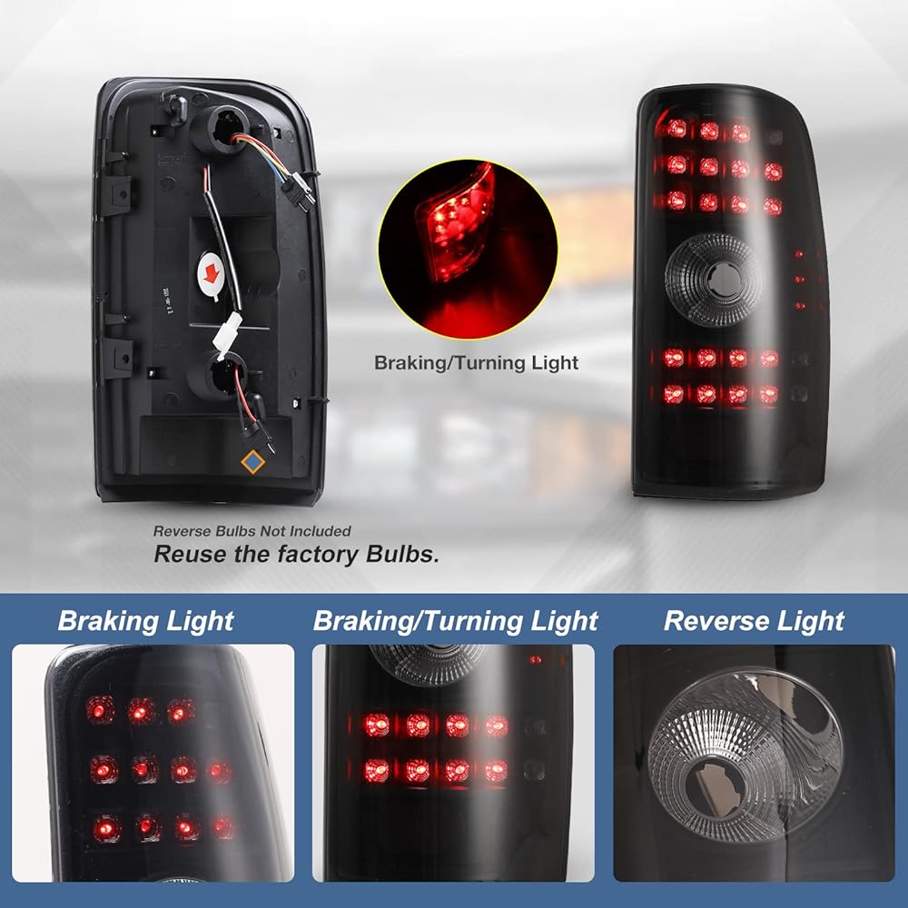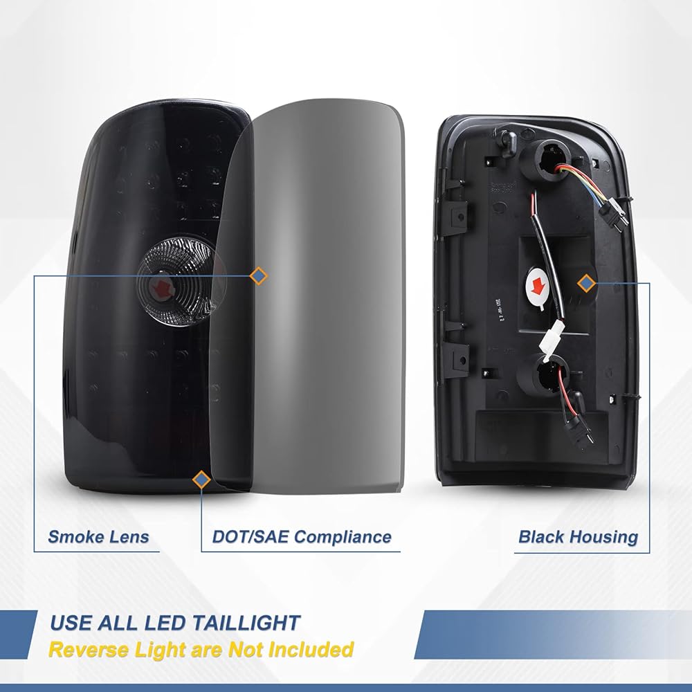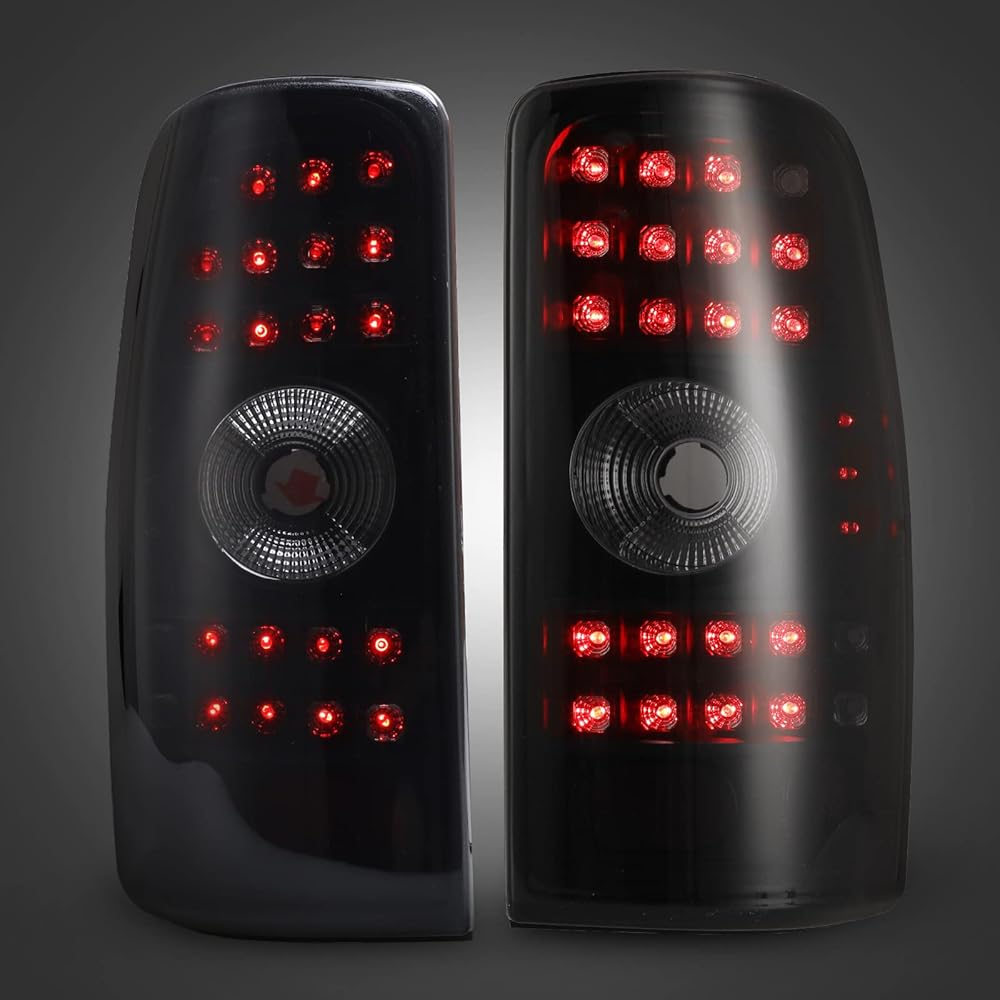 مصابيح خلفية LED AUTOWIKI مناسبة لـ 2000-2006 Chevy Suburban/Tahoe/GMC Yukon (غير مناسبة لنماذج نمط الباب المزدوج/باب الحظيرة) مجموعة مصابيح الذيل (أسود/دخان) قطعتان