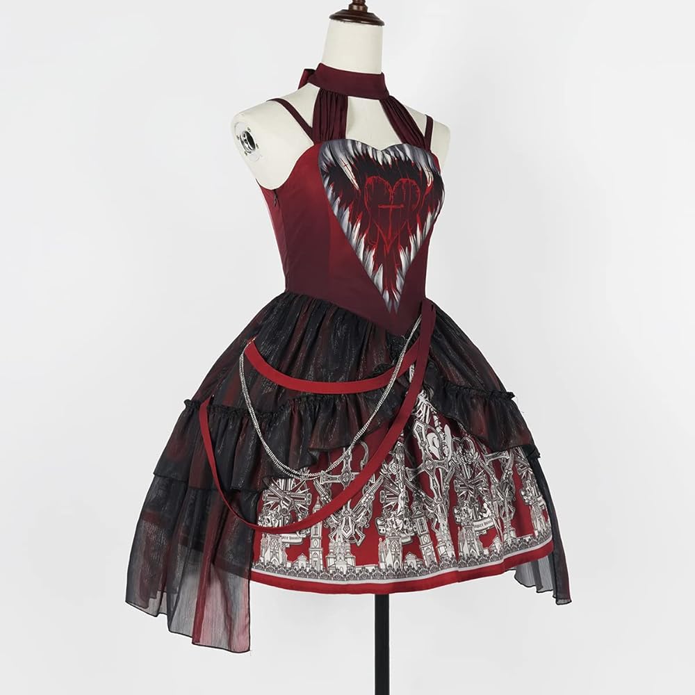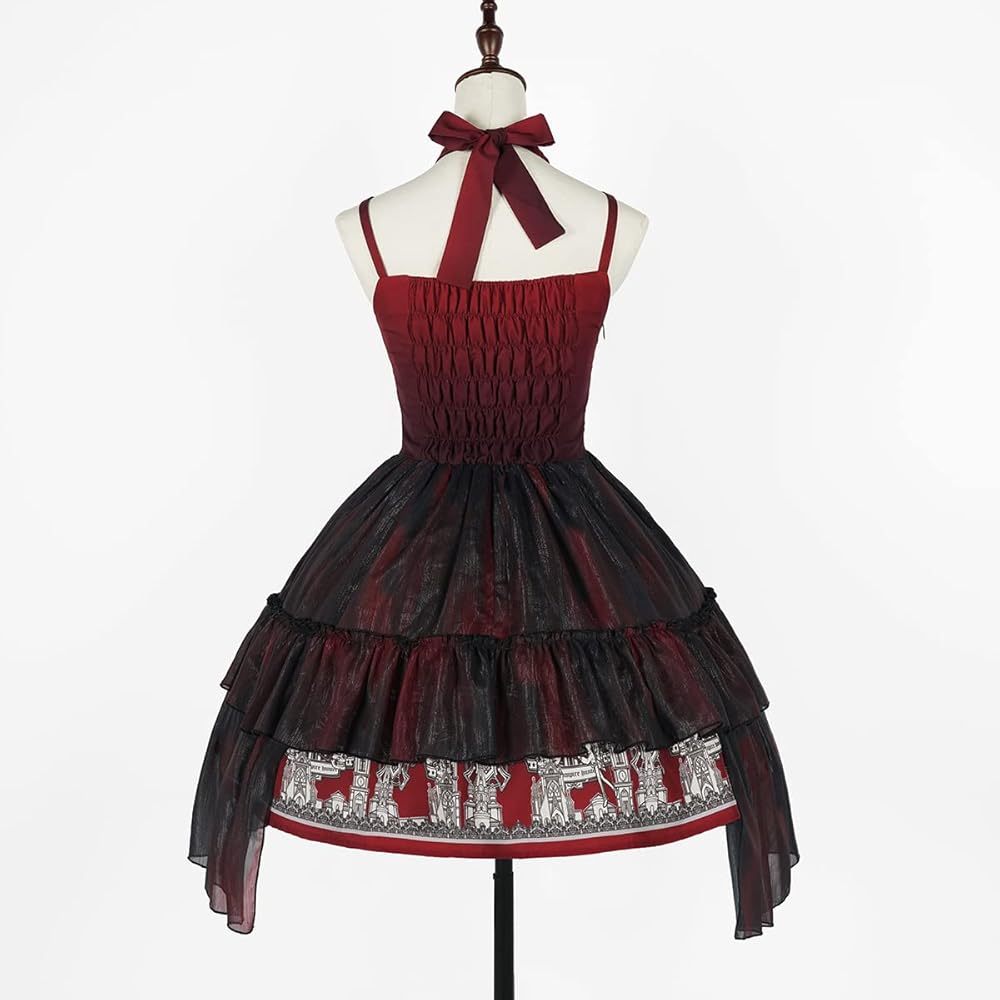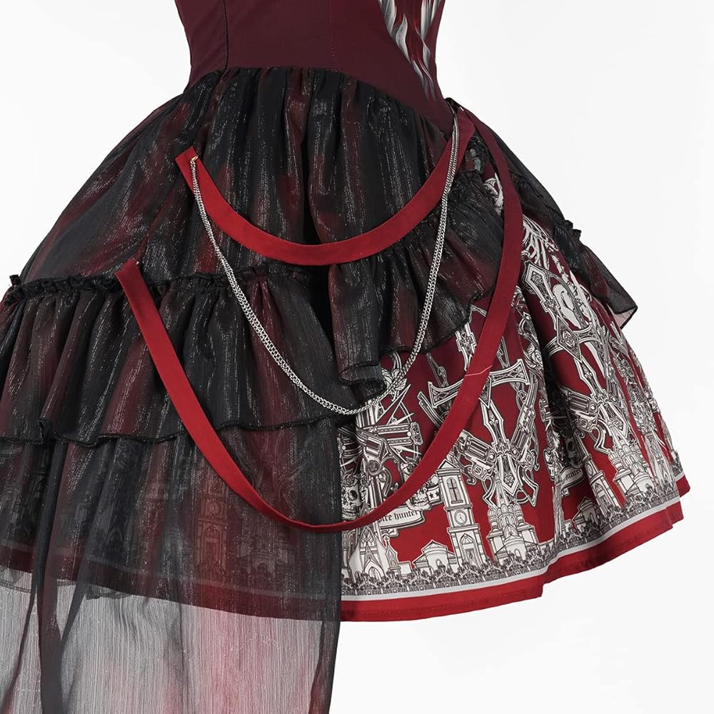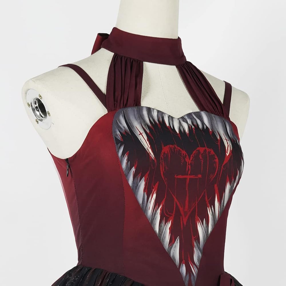 - المزايا: كشكشة، دانتيل، فستان بحمالة عنق، تعديل مرن للخصر الخلفي، طباعة حصرية للهالوين، الحفلات التنكرية، الموضة، مشرقة، أكثر شخصية.
