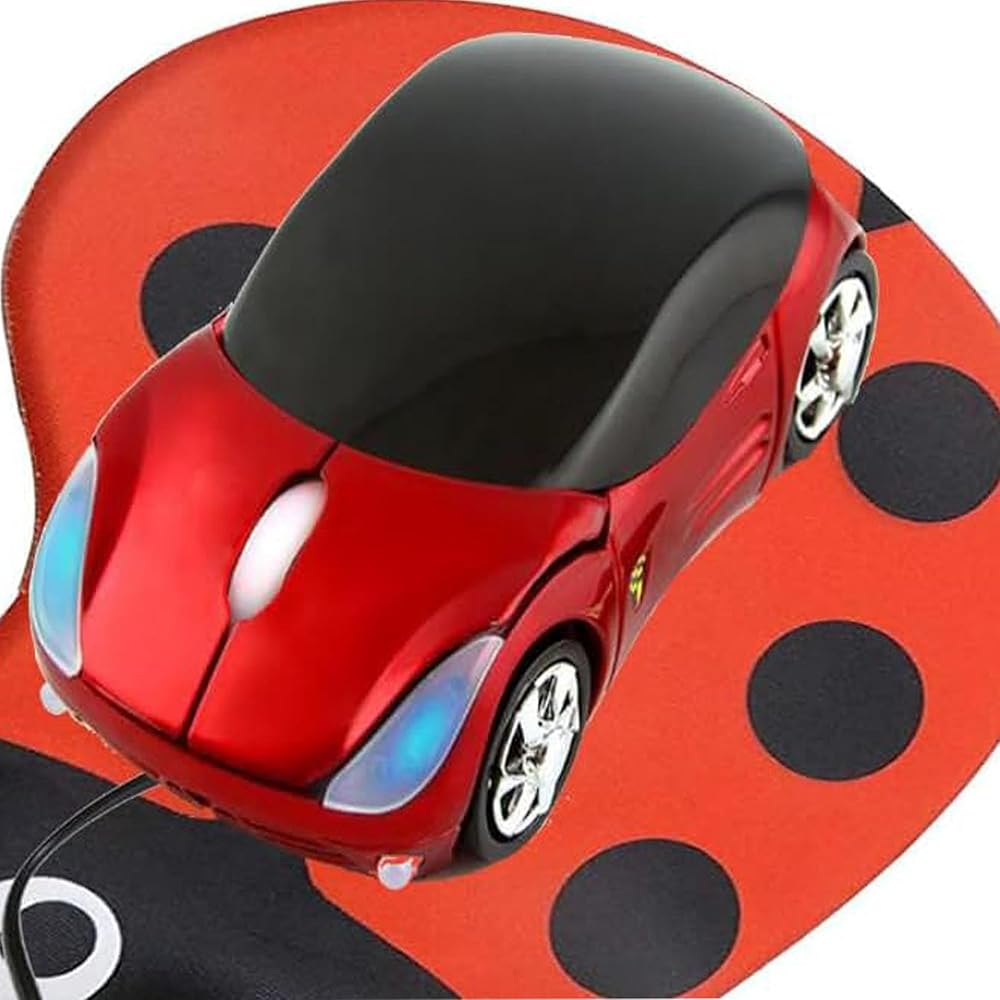 ماوس السيارة الرياضية Little SyoheFerrari، ماوس المكتب، ماوس الأطفال، ماوس إبداعي، ماوس ذكي للمحرك البصري، ماوس USB سلكي. (أحمر)