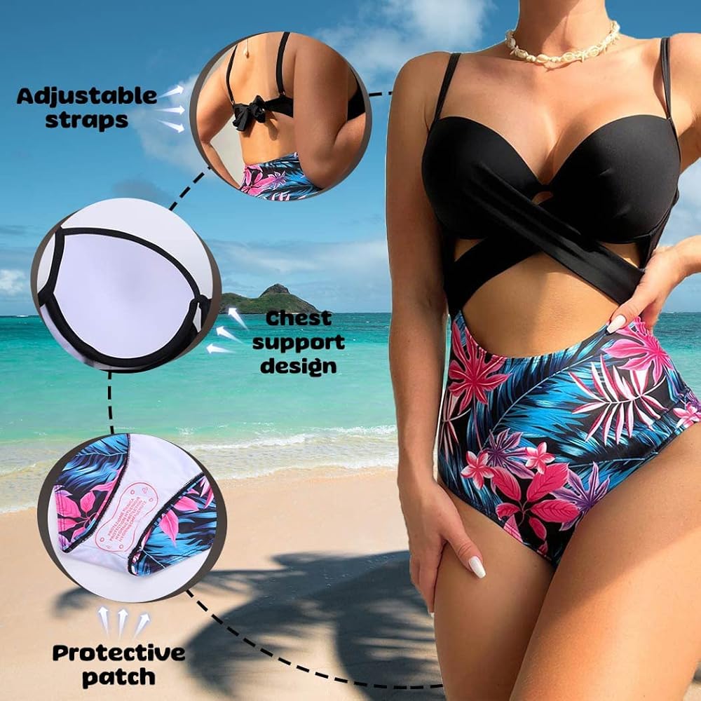 • Criss cross one piece bathing suits: Cutout design on front and back,adds a little sexy and fashionable to this classic swimsuit.The back tie knot and adjustable shoulder straps fit your body curves perfectly.