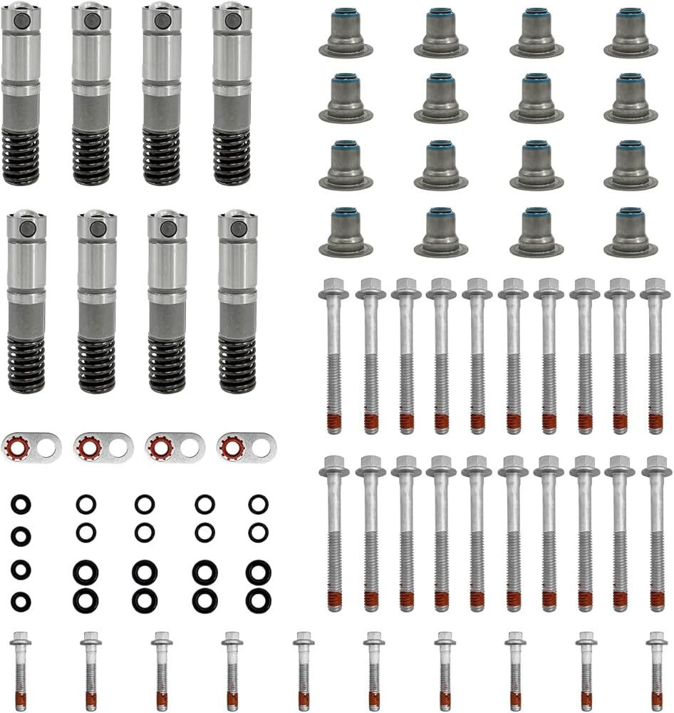 تتضمن العبوة - حشية رأس فولاذية متعددة الطبقات (MLS)، وحشية غطاء الصمام، وأختام جذع الصمام، وحشية مشعب السحب، وحشية مشعب العادم، وختم عمود الكامات الأمامي، وحلقات على شكل حرف O، وحشيات صغيرة أخرى، و30 مسمارًا لرأس الأسطوانة (20 مسمارًا طويلًا: 100 مم، 10 براغي صغيرة: 45 مم)، 8 رافعات أسطوانية هيدروليكية A-FM، 8 رافعات أسطوانية هيدروليكية NON-AFM، 4 صينية رفع A-FM مع مسامير.