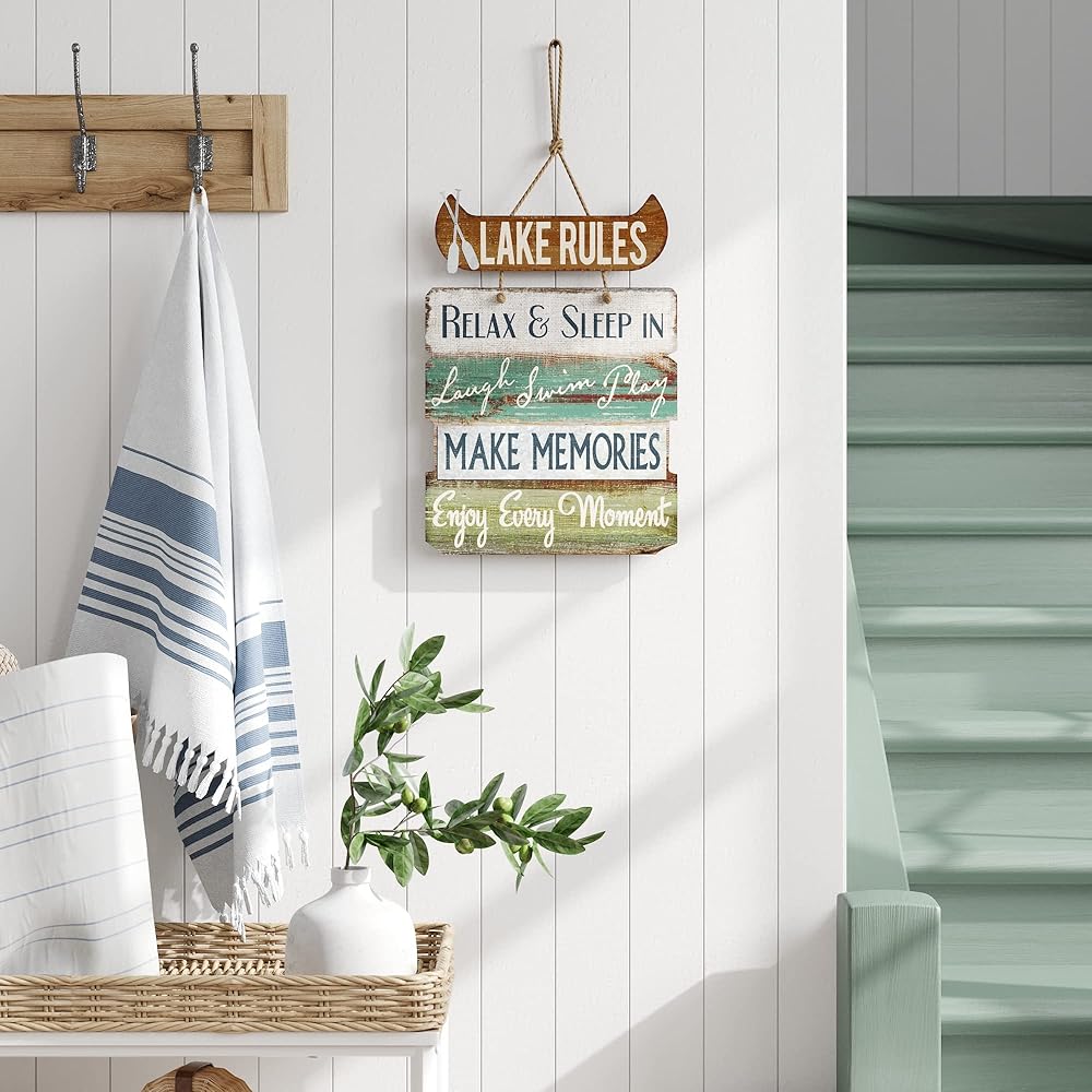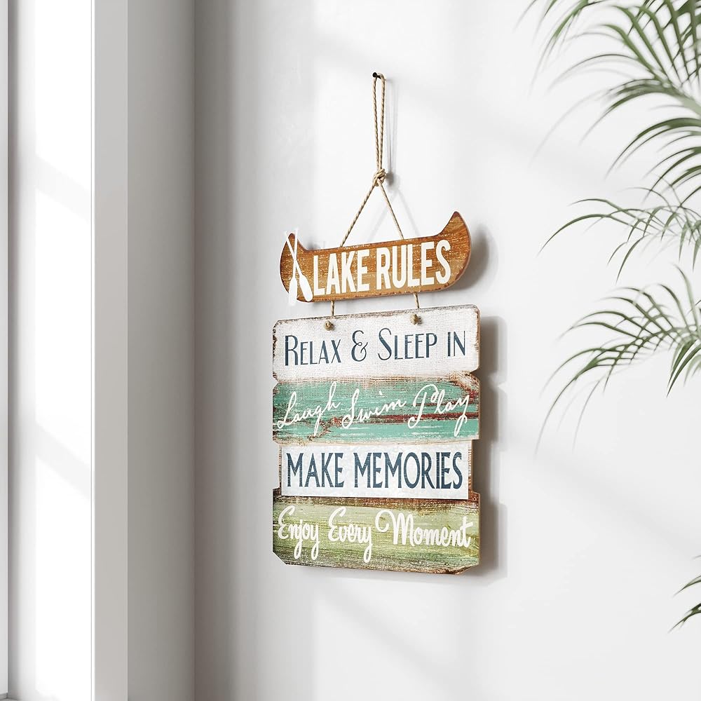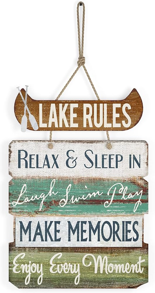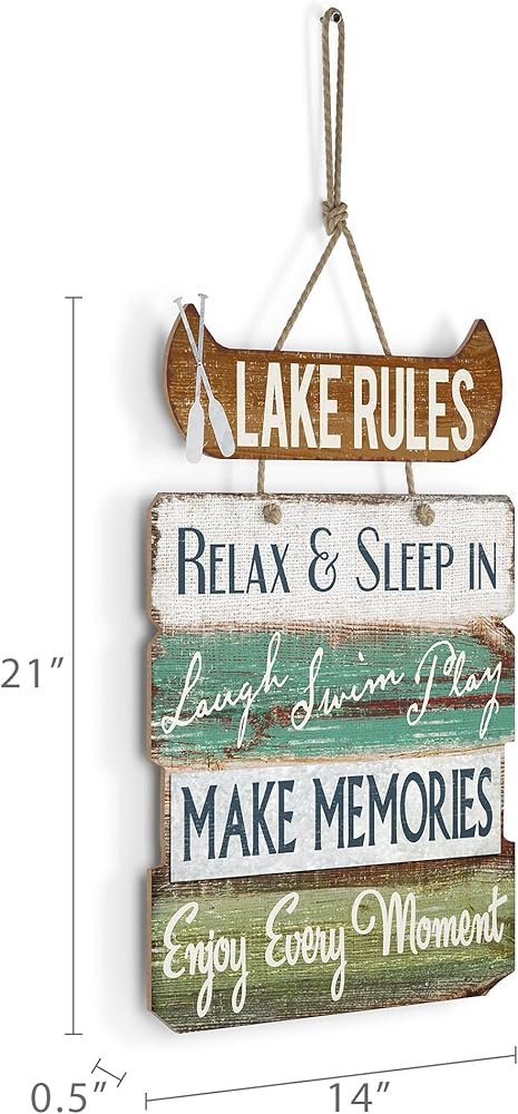 تصاميم بارنيارد 'قواعد البحيرة' ديكور منزل البحيرة للمنزل، علامة بحيرة معلقة على جدار البحيرة، لافتات بحيرة لمطبخ منزل البحيرة، ديكور بحيرة ريفي لعلامة المنزل، 14 بوصة × 21 بوصة