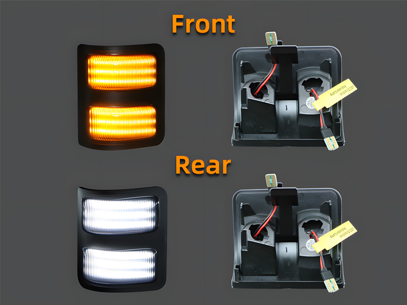 【متينة ومقاومة للماء】: صُممت لتتحمل أصعب الظروف، مصابيح تحديد المرآة الجانبية LED هذه مصنوعة من عدسات وغطاء مدخن من البولي كربونات عالي التأثير، وتتميز بتصميم مغلق مع تصنيف IP67 المقاوم للماء. يمكنها التكيف مع جميع أنواع الظروف الجوية القاسية، مما يضمن عدم تراكم الرطوبة حتى بعد المطر أو غسيل السيارة.