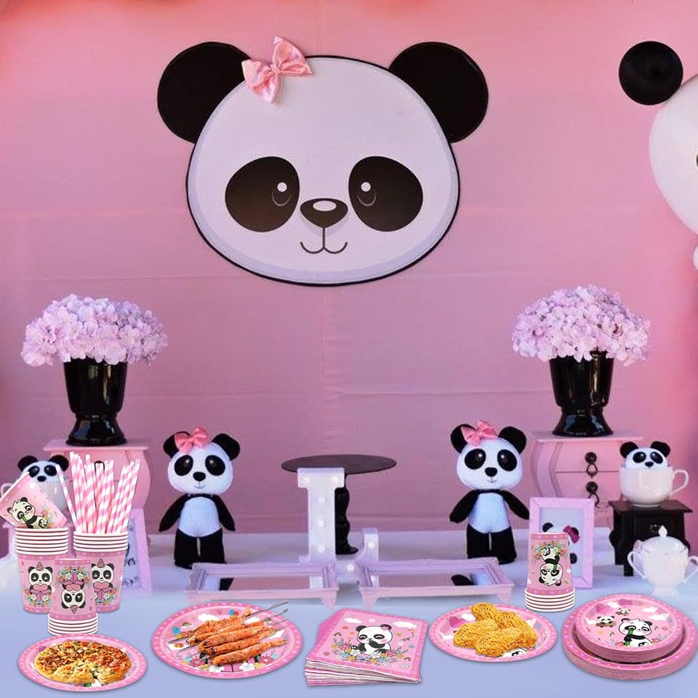 1Pink Panda Party Tableware Supplies: