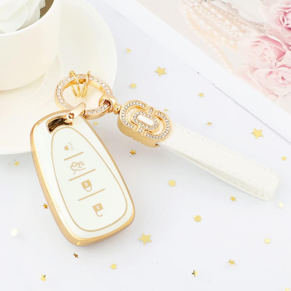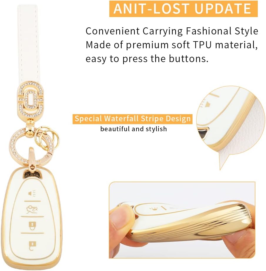CARFIB's key cover for Chevrolet features a high-end glossy design, and the leather keychain with bling diamonds greatly increase the beauty of the keys.