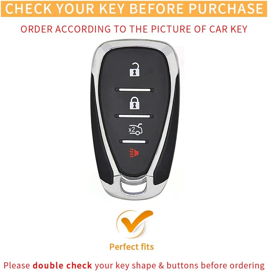 • Compatibility Fitment : The key fob cover perfectly fit for Malibu 2016 - 2023, Cruze LT 2017 - 2018, Equinox 2017 - 2022, Camaro 2016 - 2023, Blazer 2019 - 2023, Traverse 2017 - 2023, Trailblazer 2021 - 2023, Spark 2017 - 2022, Bolt EV 2017 - 2023, Volt 2016 - 2019, Trax LT 2017 - 2022 4-button key. (Please contrast the appearance of your key fobs same as image before ordering.)