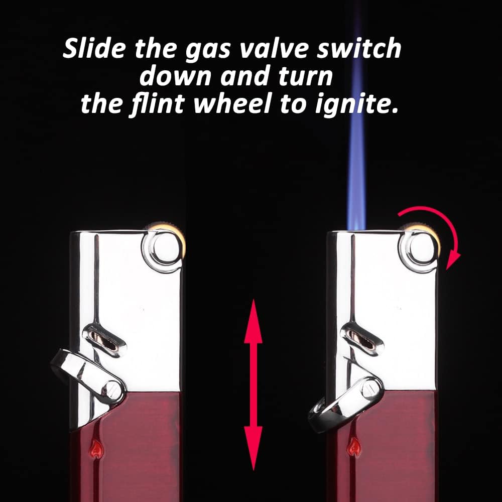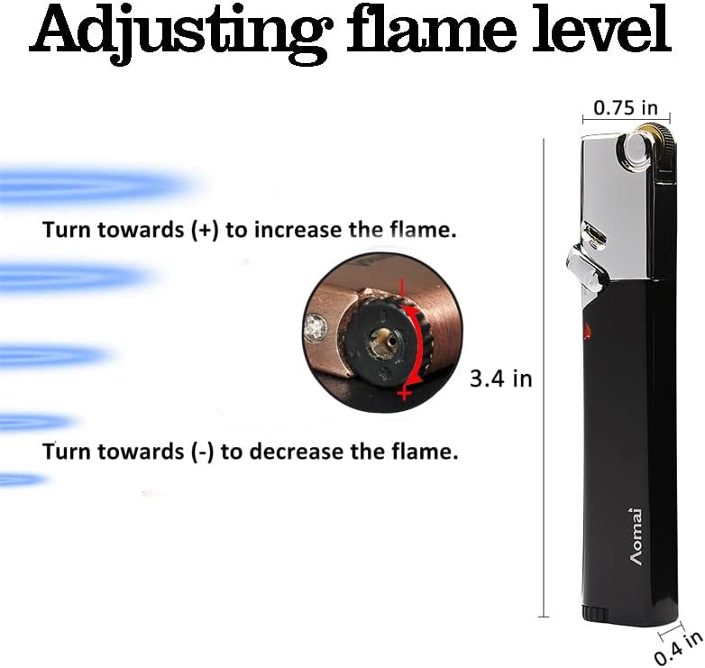 【Flame Adjustable& Windproof】Anti-slip gear control valve design, Manually rotate to adjust the flame size. you can easily change the flame level. this torch lighter can easily against any breeze. windproof durable it's suitable for indoor and outdoor use.