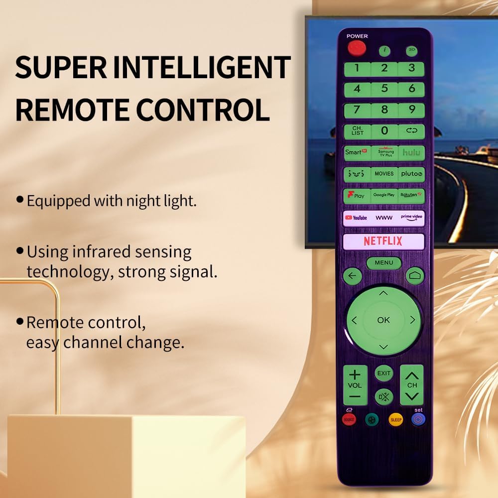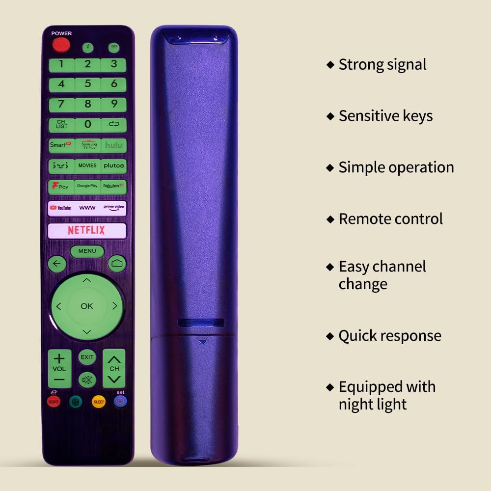 وظائف التلفزيون الذكي: يمكن لجهاز التحكم عن بعد هذا التحكم بشكل فعال في جميع وظائف التلفزيون الذكي الخاص بك، بما في ذلك تشغيل/إيقاف التشغيل، والتحكم في مستوى الصوت، وتغيير القناة، وقائمة يوتيوب السريعة، والفيديو الرئيسي، ونيتفليكس، وجوجل بلاي، وتلفزيون راكوتين والمزيد.