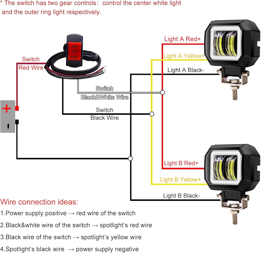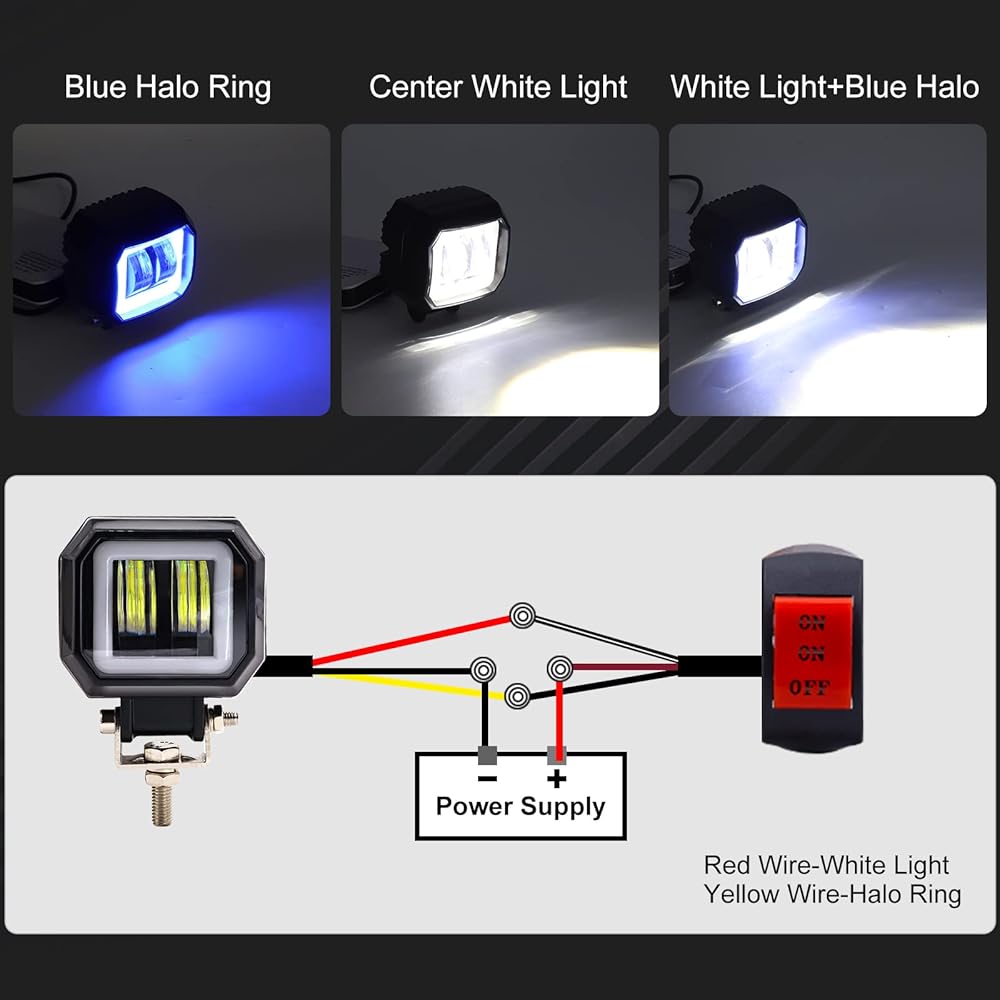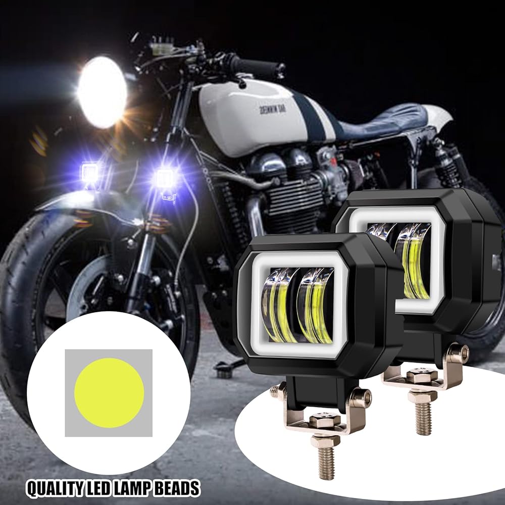 • [عيون الملاك البيضاء] يحتوي مصباح الضباب للدراجات النارية على وضعين للضوء: ضوء أبيض مركزي، حلقة هالة بيضاء عين الملاك. يمكن استخدامه كإضاءة نهارية للدراجة النارية، أو مصباح كشاف للدراجة النارية.